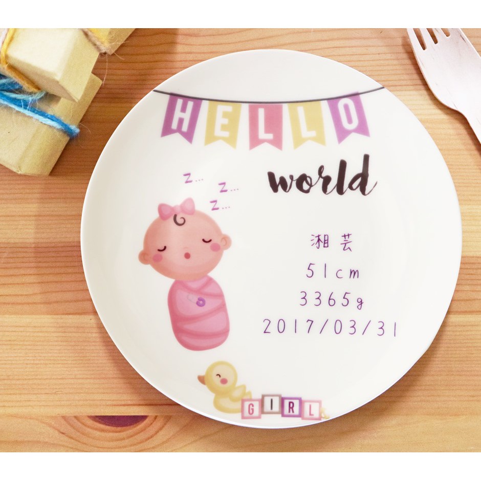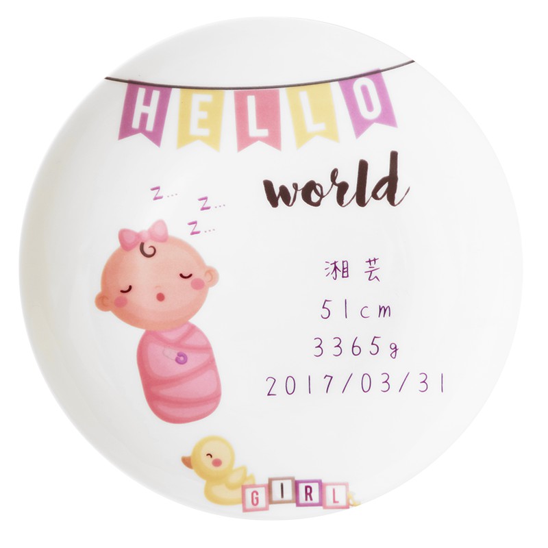 客製化女寶寶出生紀念6.5吋骨瓷盤加盤架 滿月彌月禮