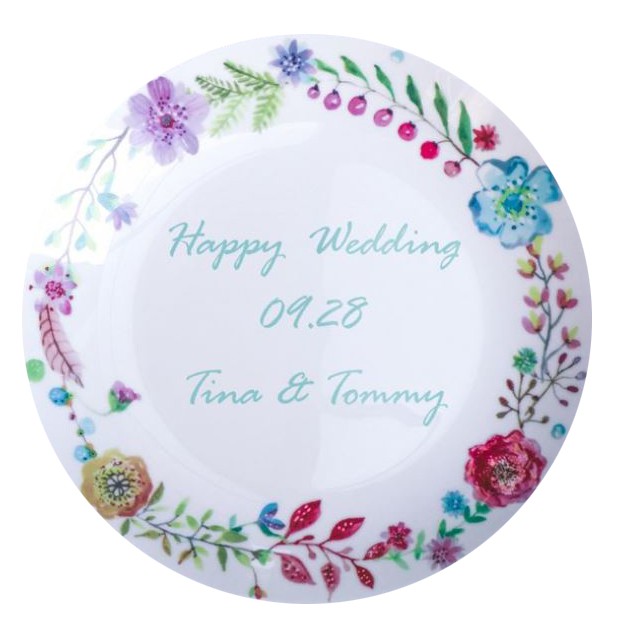 客製化小清新 8吋骨瓷盤(付盤架) 量多價格優惠 結婚紀念禮物 婚禮小物 蛋糕盤
