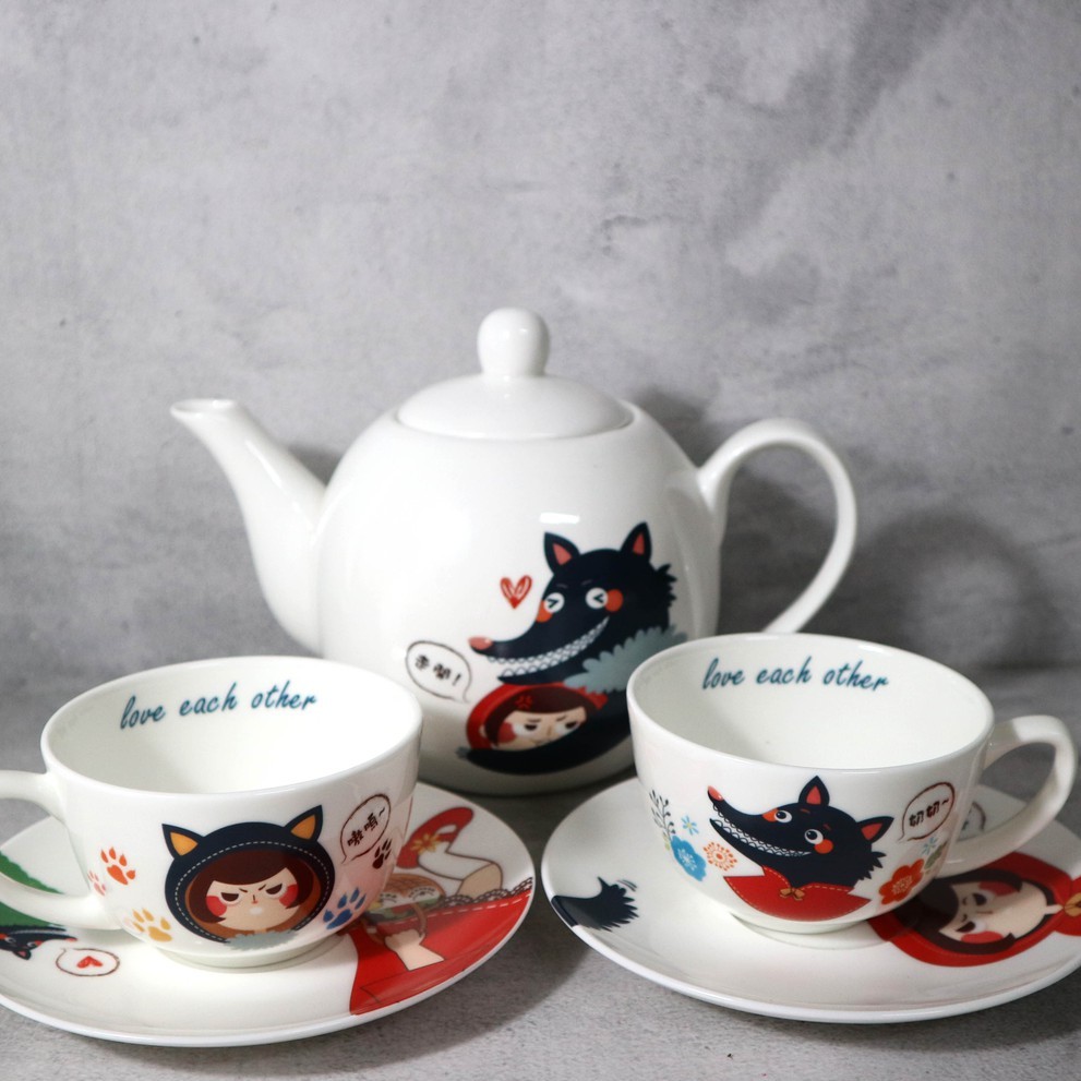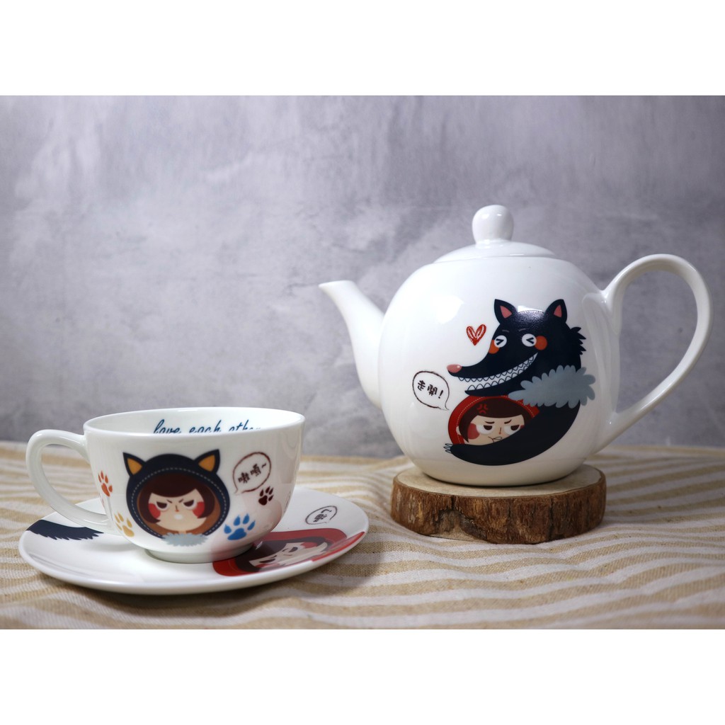 客製化小紅帽茶具組 茶壺兩茶杯碟五件套組 聖誕禮物 聖誕交換禮物 童話故事 生日禮物