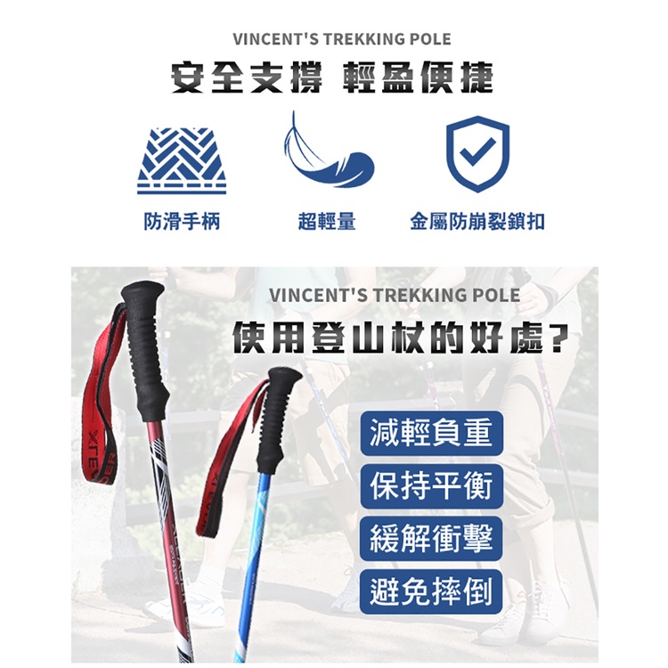 【Leader X】7075輕量鋁合金外鎖式三節登山杖 附杖尖保護套 阻泥板 | 登山杖 登山必備(台灣24h出貨)