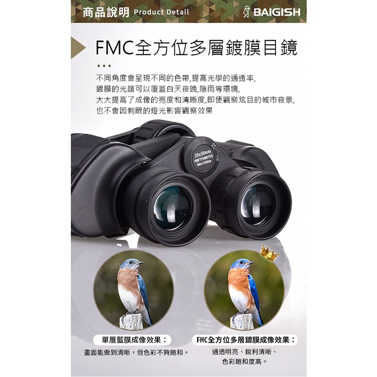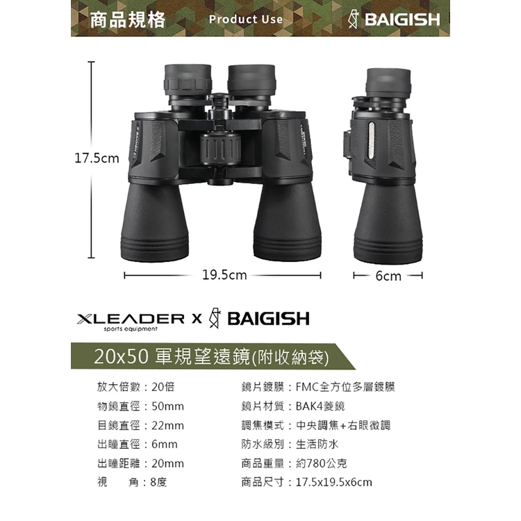 【Leader X】BAIGISH 20x50 微光夜視防潑水高倍雙筒軍規望遠鏡(台灣24h出貨)