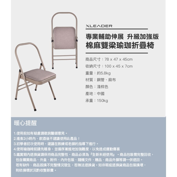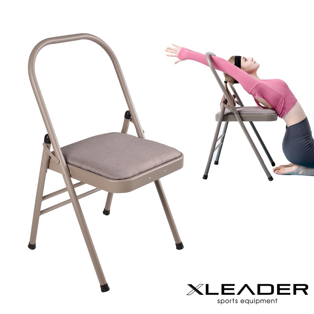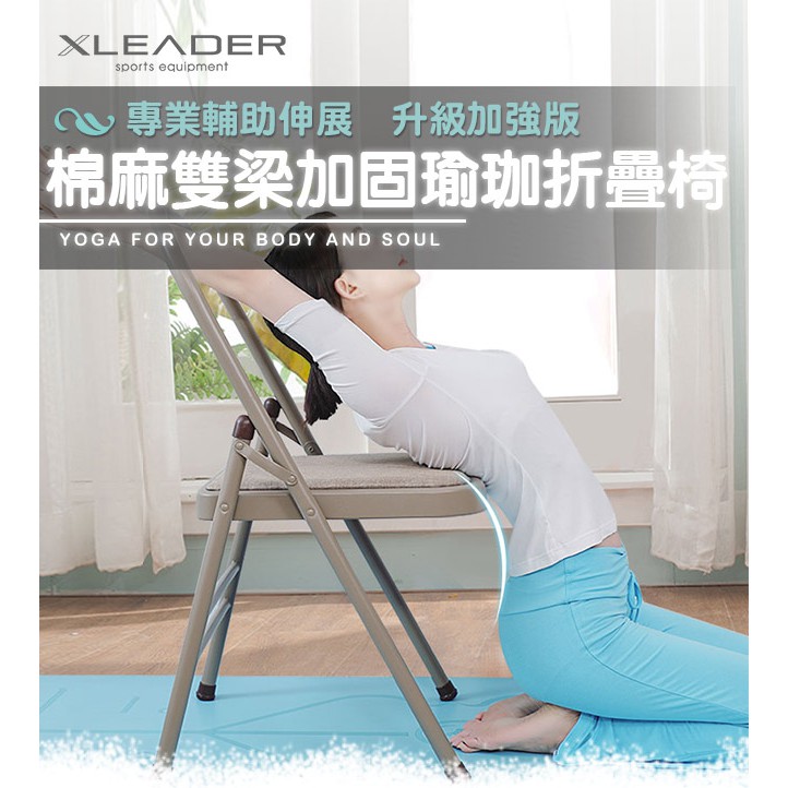 【Leader X】專業輔助伸展 升級加強版棉麻雙梁瑜珈折疊椅 淺棕色 | 訓練椅 倒立椅(台灣24h出貨)