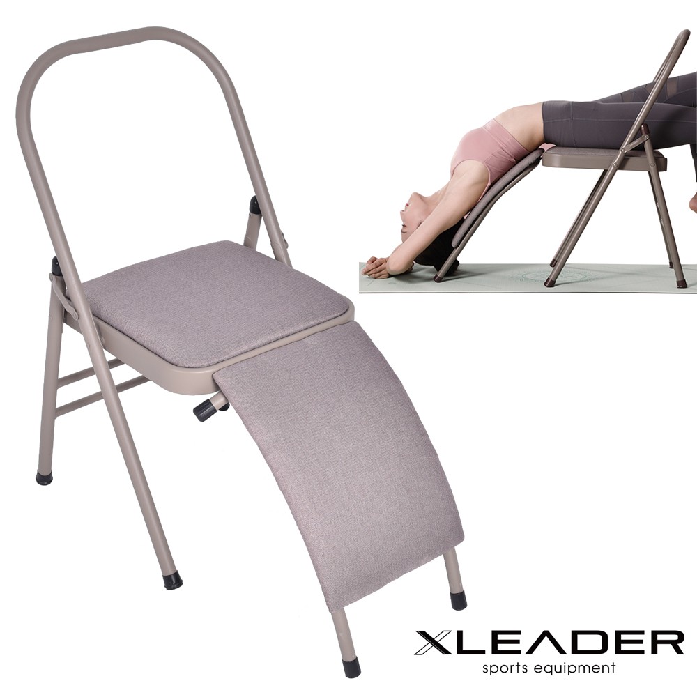 【Leader X】專業輔助伸展 升級加強版棉麻雙梁瑜珈折疊椅(含腰托) | 訓練椅 倒立椅(台灣24h出貨)