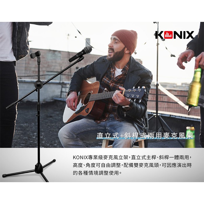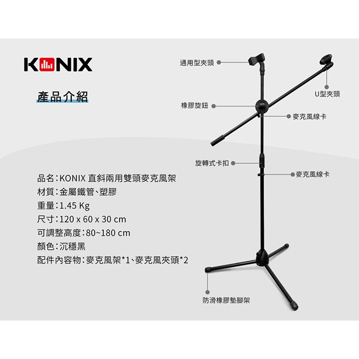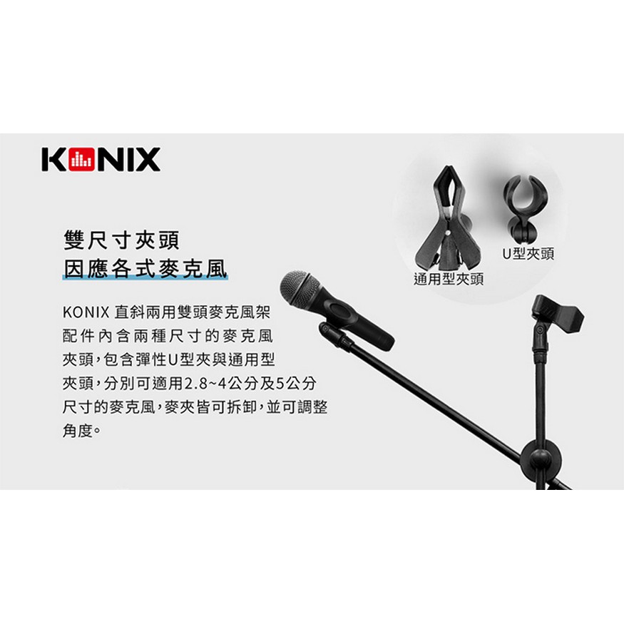 免運!!!【KONIX】 科尼斯樂器 直斜兩用雙頭麥克風架 雙夾頭麥架 直立+斜桿 防滑腳架 摺疊收納 街頭表演設備