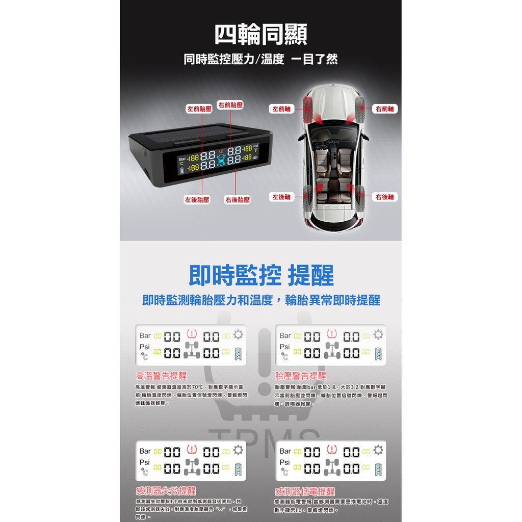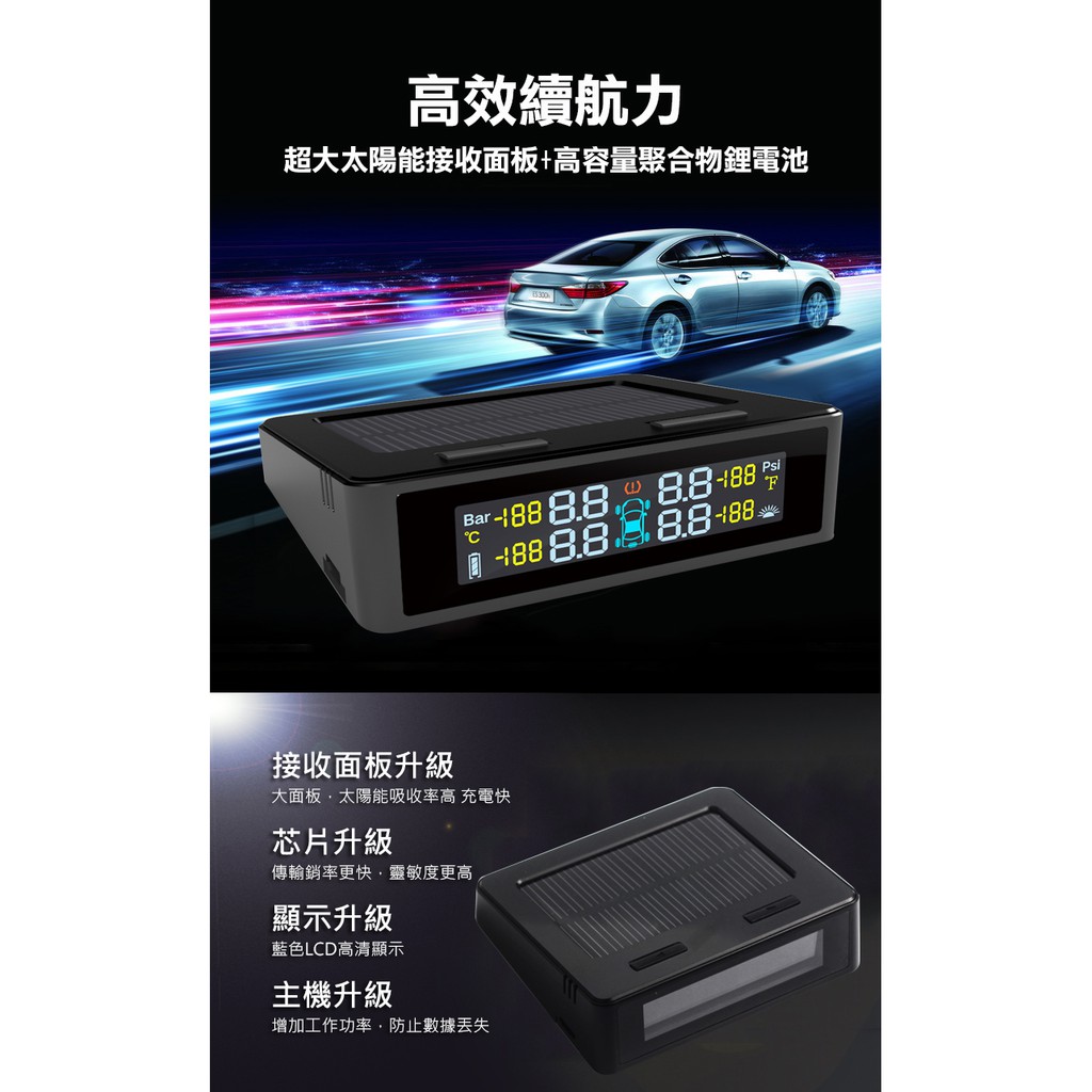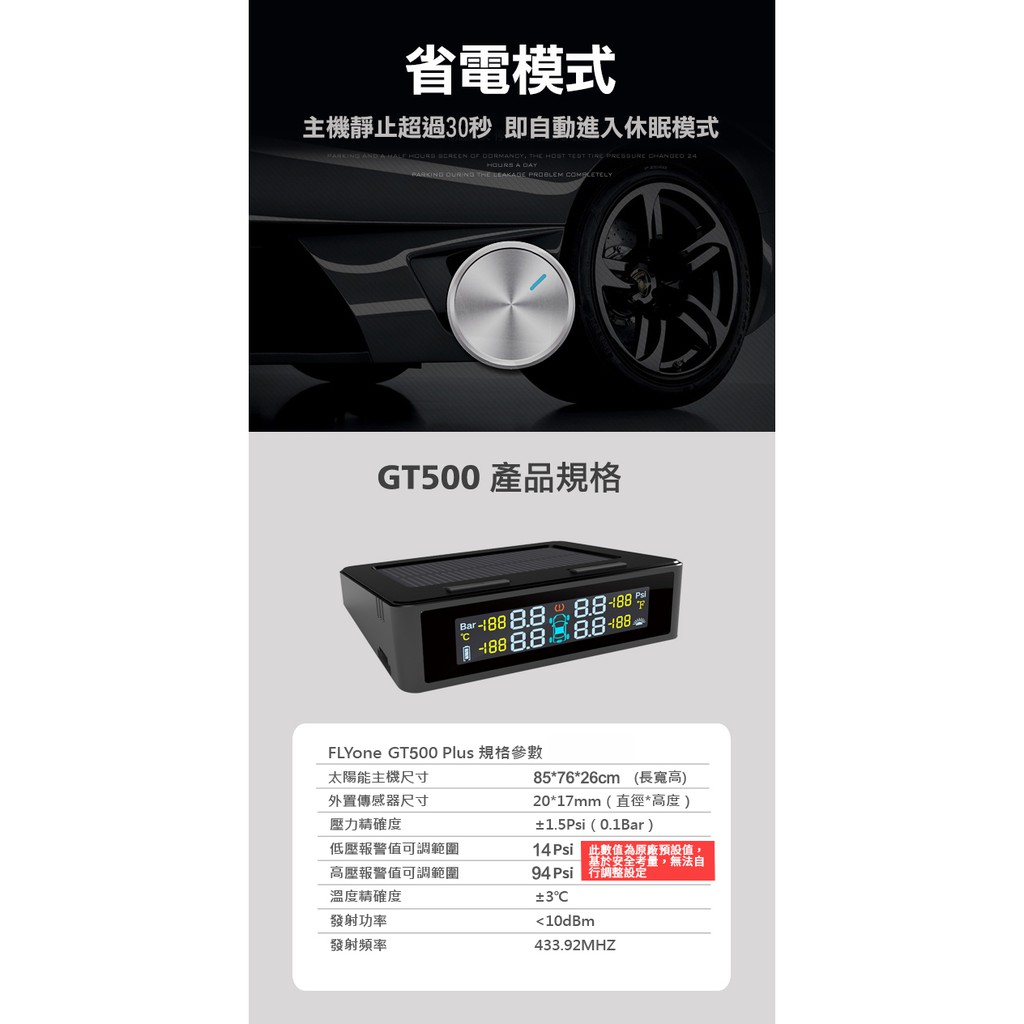 FLYone GT500 胎壓偵測器 無線太陽能TPMS 彩色螢幕 德國英飛淩晶片 日本松下電池