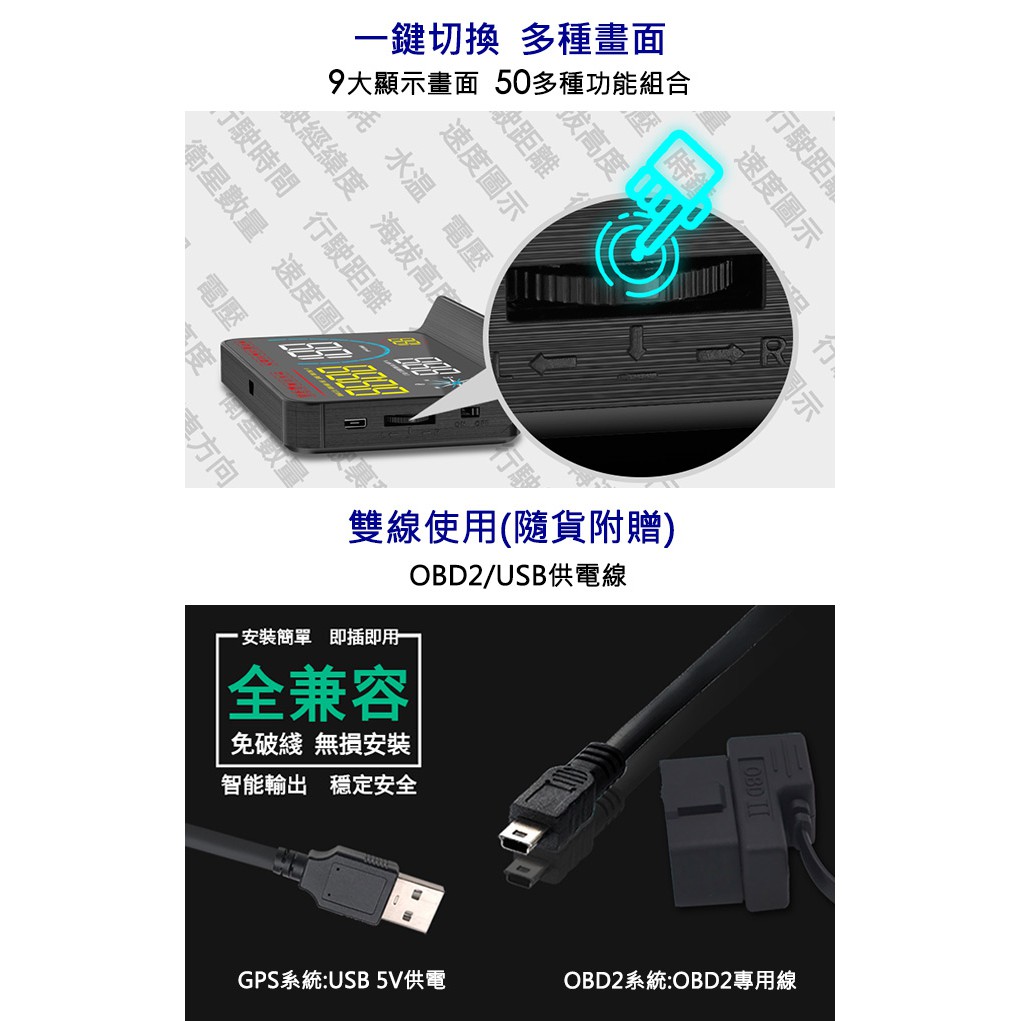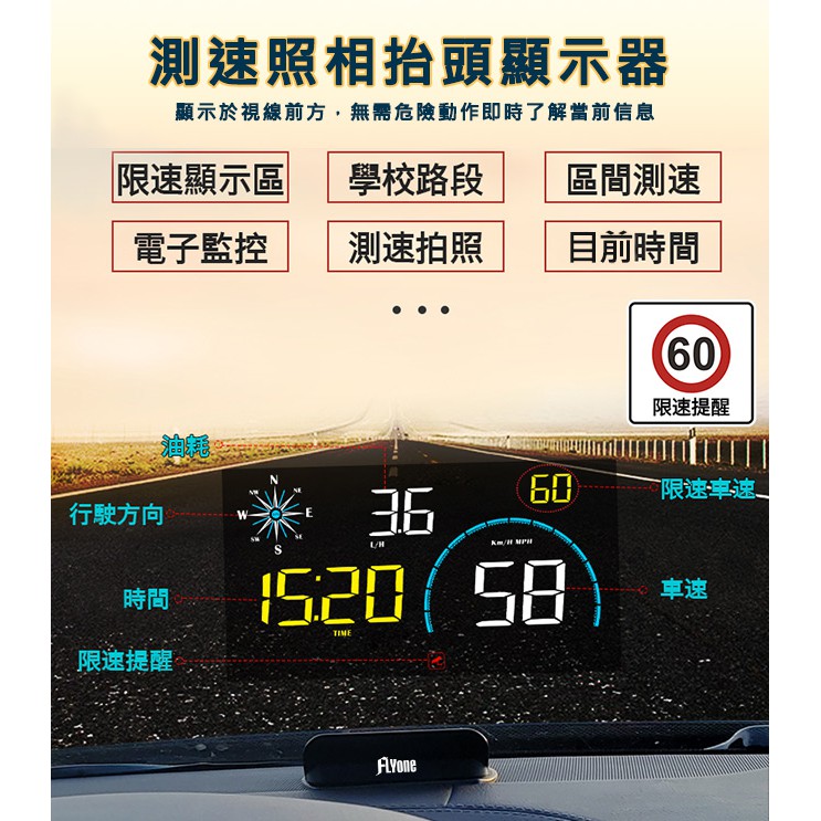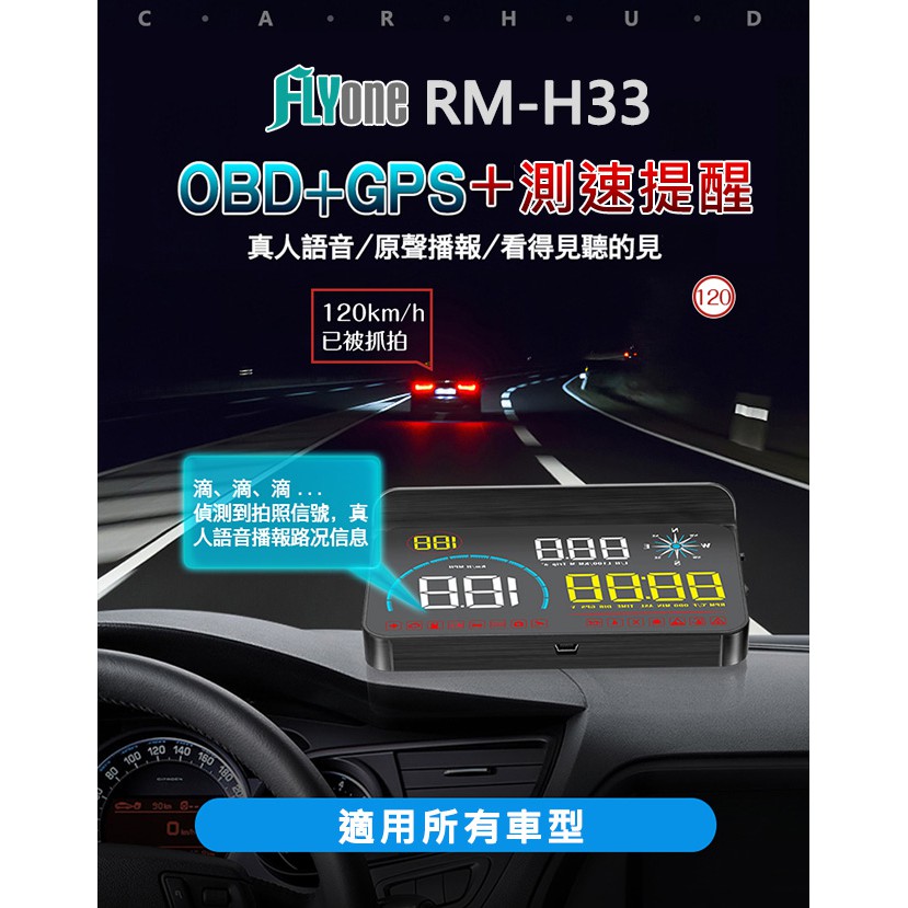 FLYone RM-H33 HUD GPS測速提醒+OBD2 雙系統多功能汽車抬頭顯示器 升級 帶開關OBD線