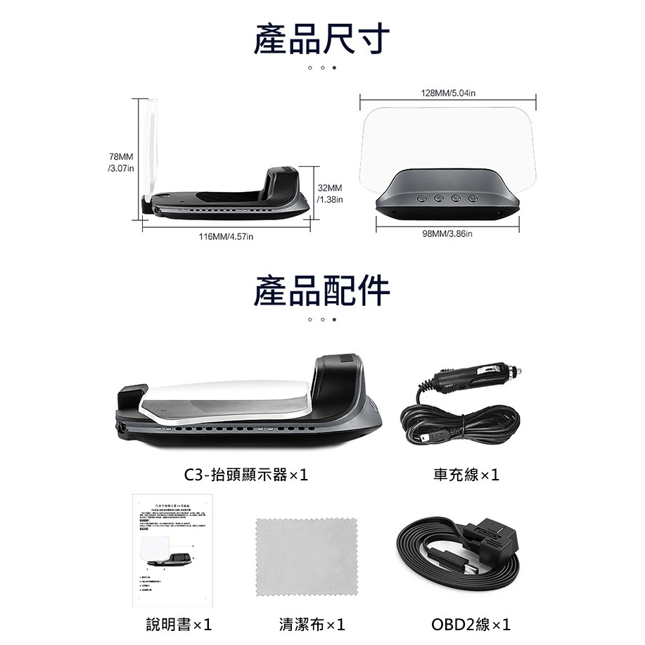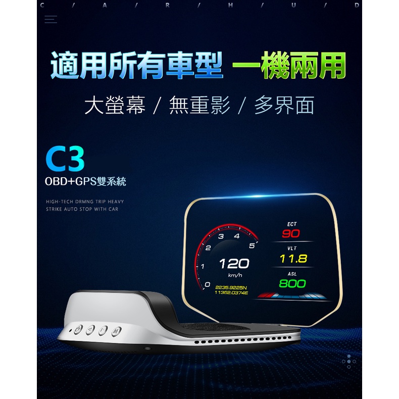 FLYone C3 標準版 OBD2/GPS 雙系統多功能汽車抬頭顯示器 升級 帶開關OBD線