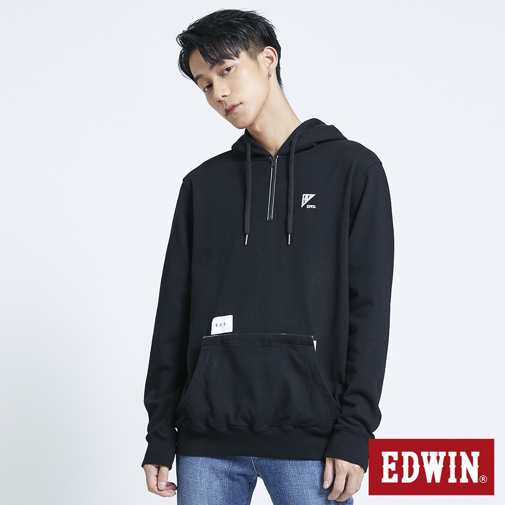 EDWIN 男款 EFS 反光拉鍊帽T(黑色)