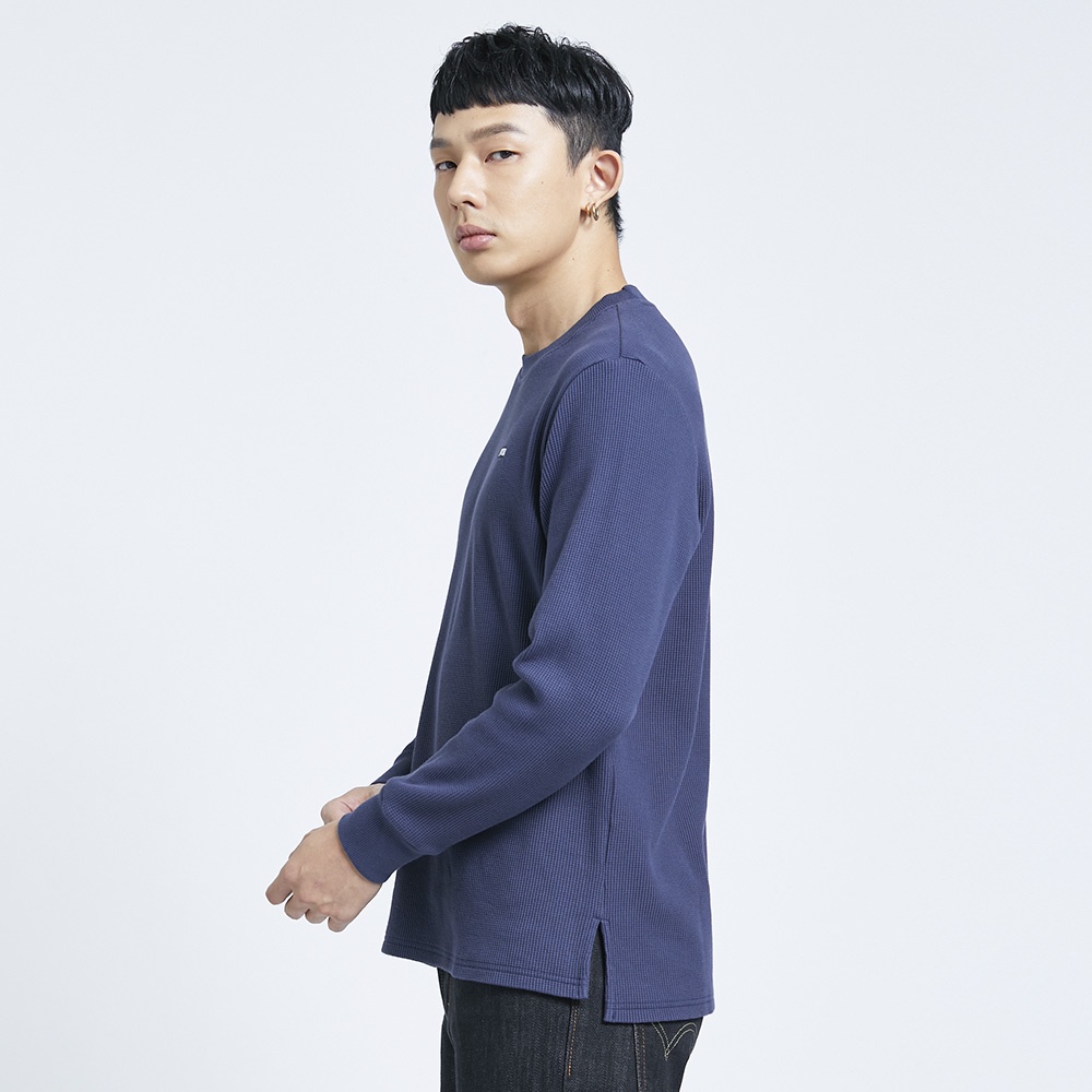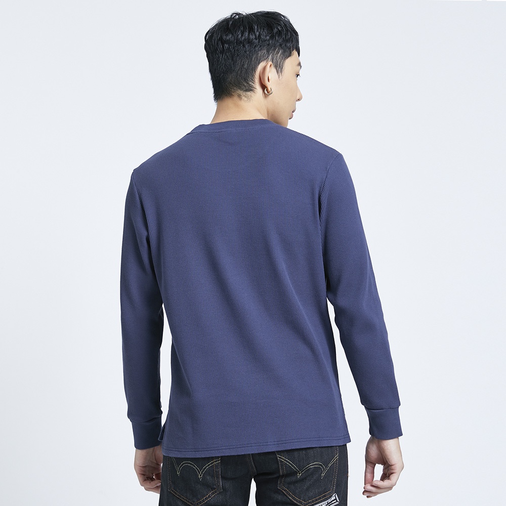 EDWIN 男款 BOX LOGO蜂巢長袖T恤(丈青色)
