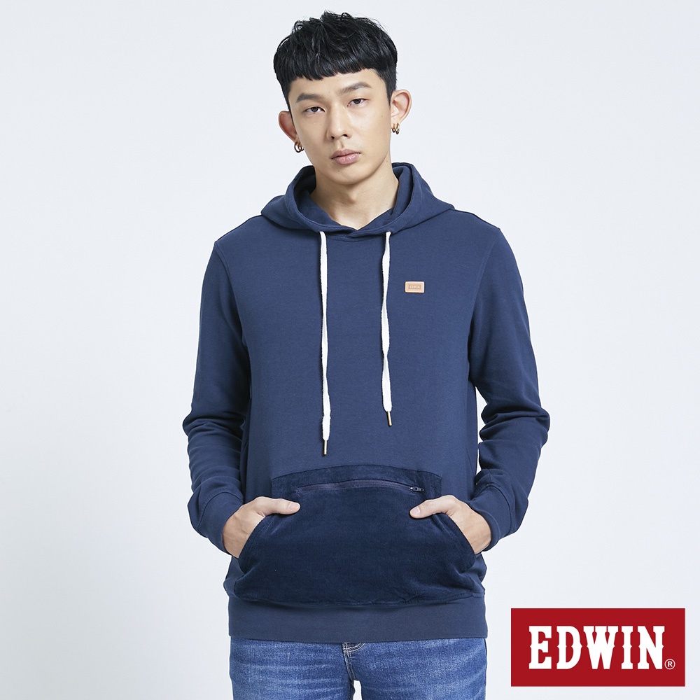 EDWIN 男款 條絨口袋帽T(灰藍色)