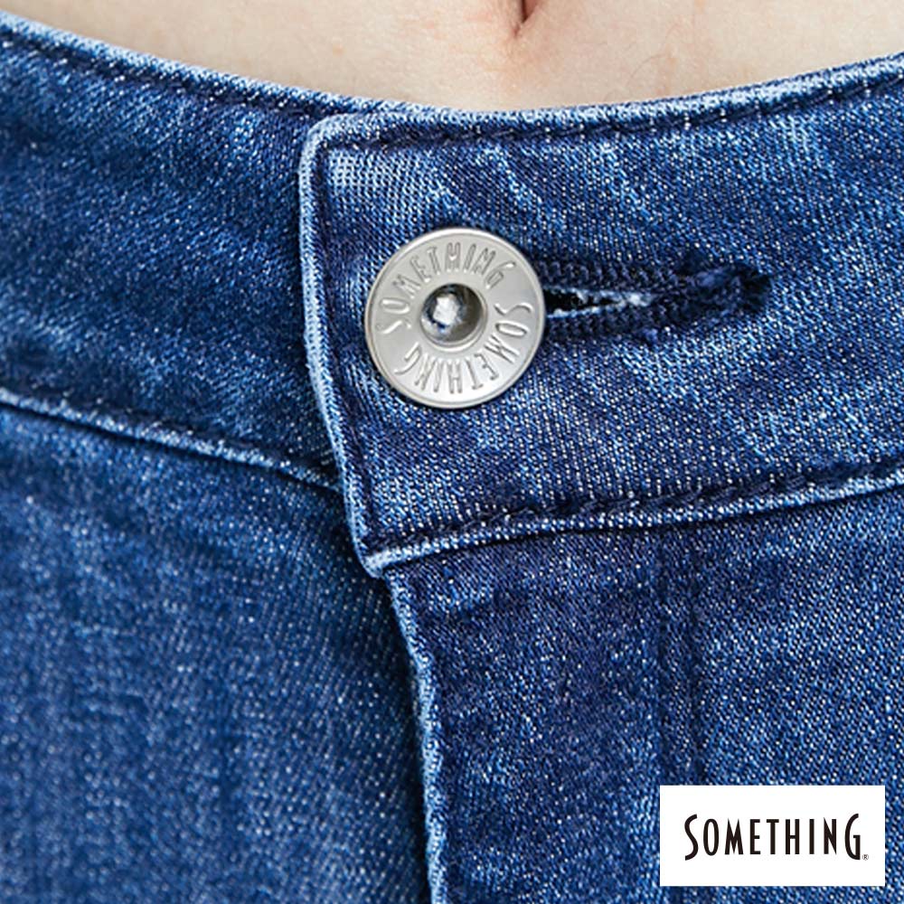 SOMETHING 女款 蜜桃提臀窄直牛仔褲(中古藍)