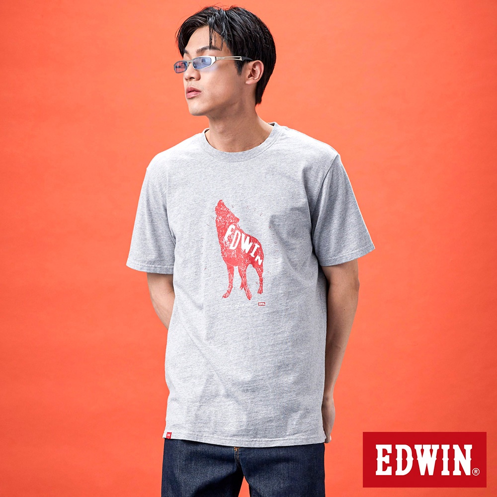 EDWIN 中性款 網路獨家 狼嚎EDWIN短袖T恤(麻灰色)