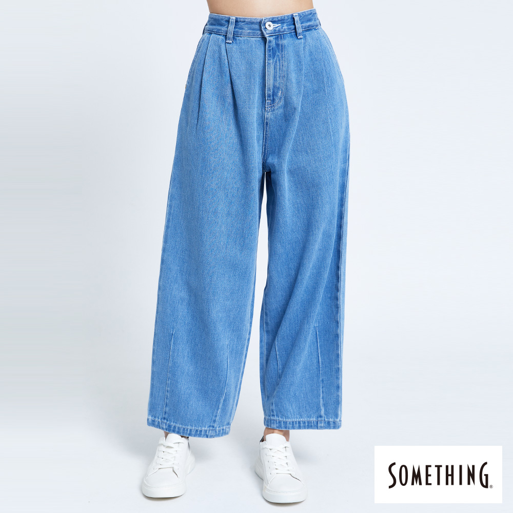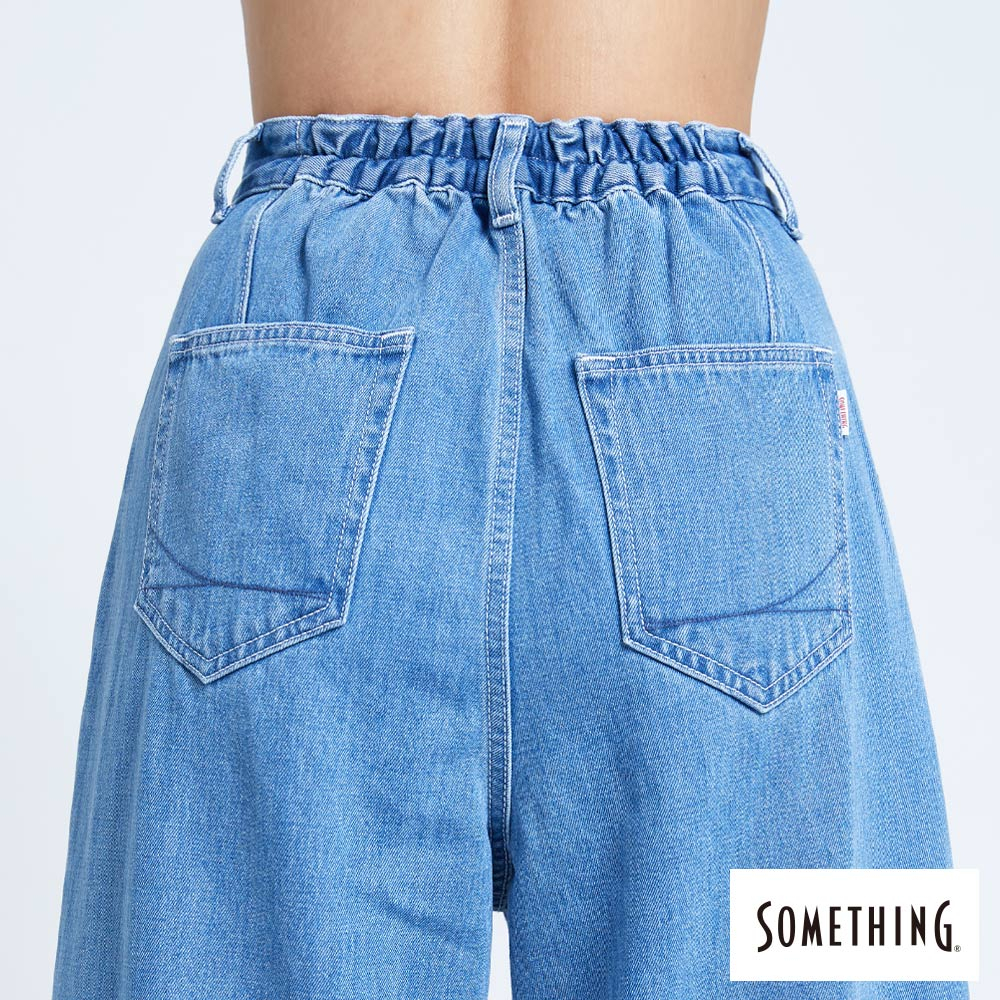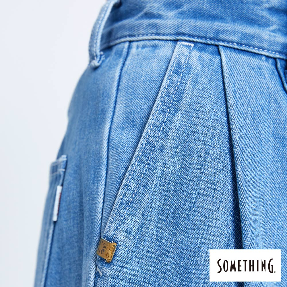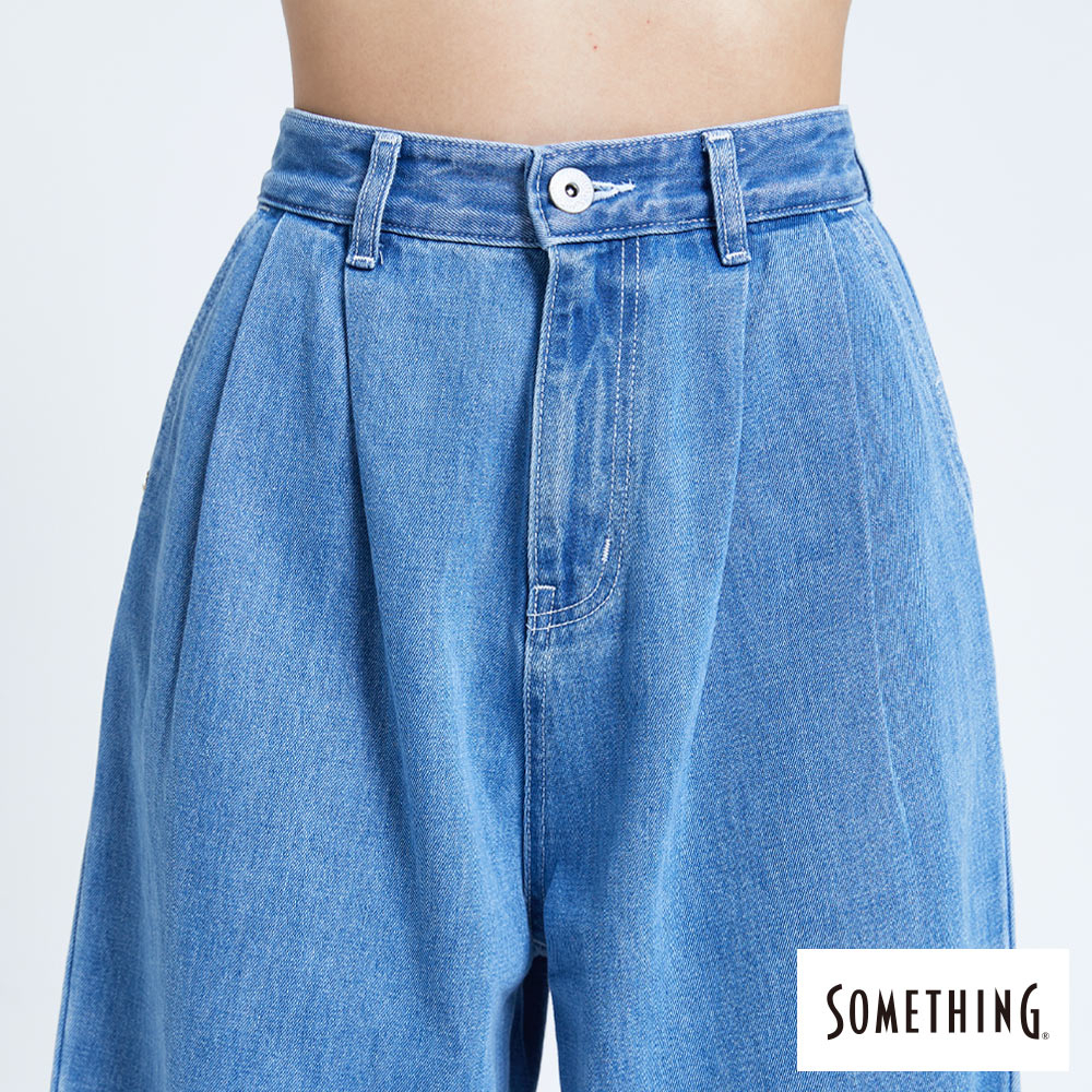 SOMETHING 女款 NEO FIT高腰褲口打摺牛仔褲(中古藍)