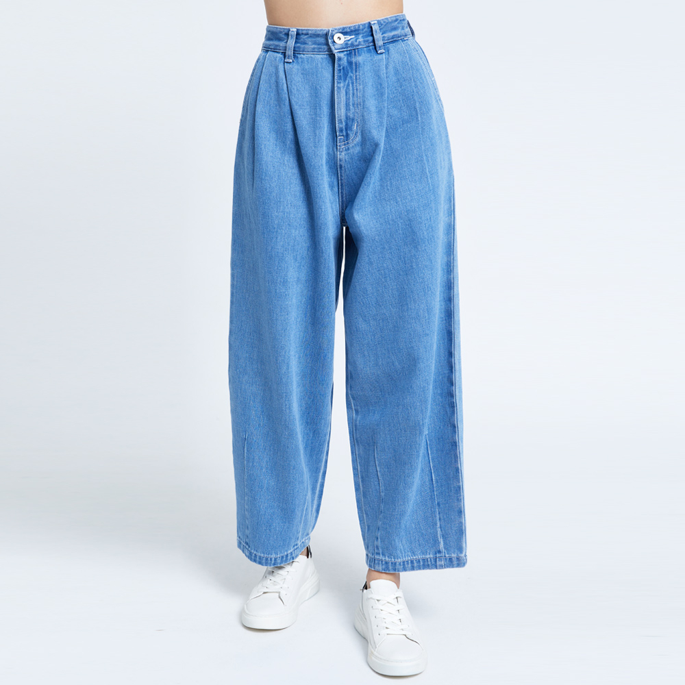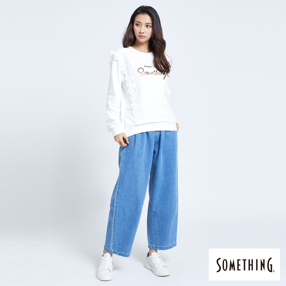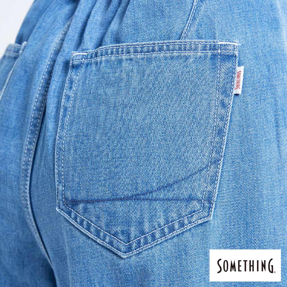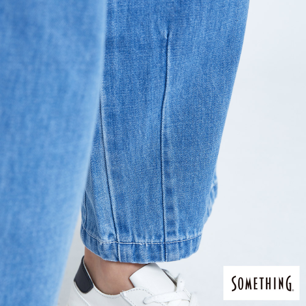 SOMETHING 女款 NEO FIT高腰褲口打摺牛仔褲(中古藍)
