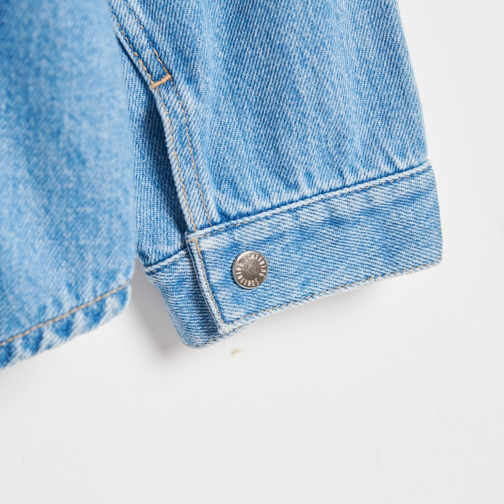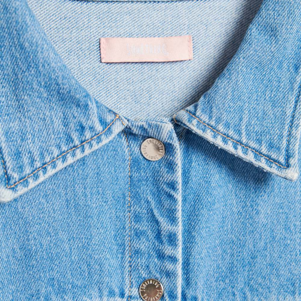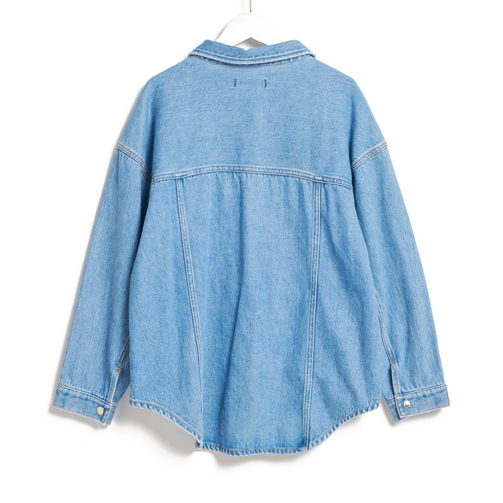 SOMETHING 女款 襯衫式牛仔外套(石洗藍)