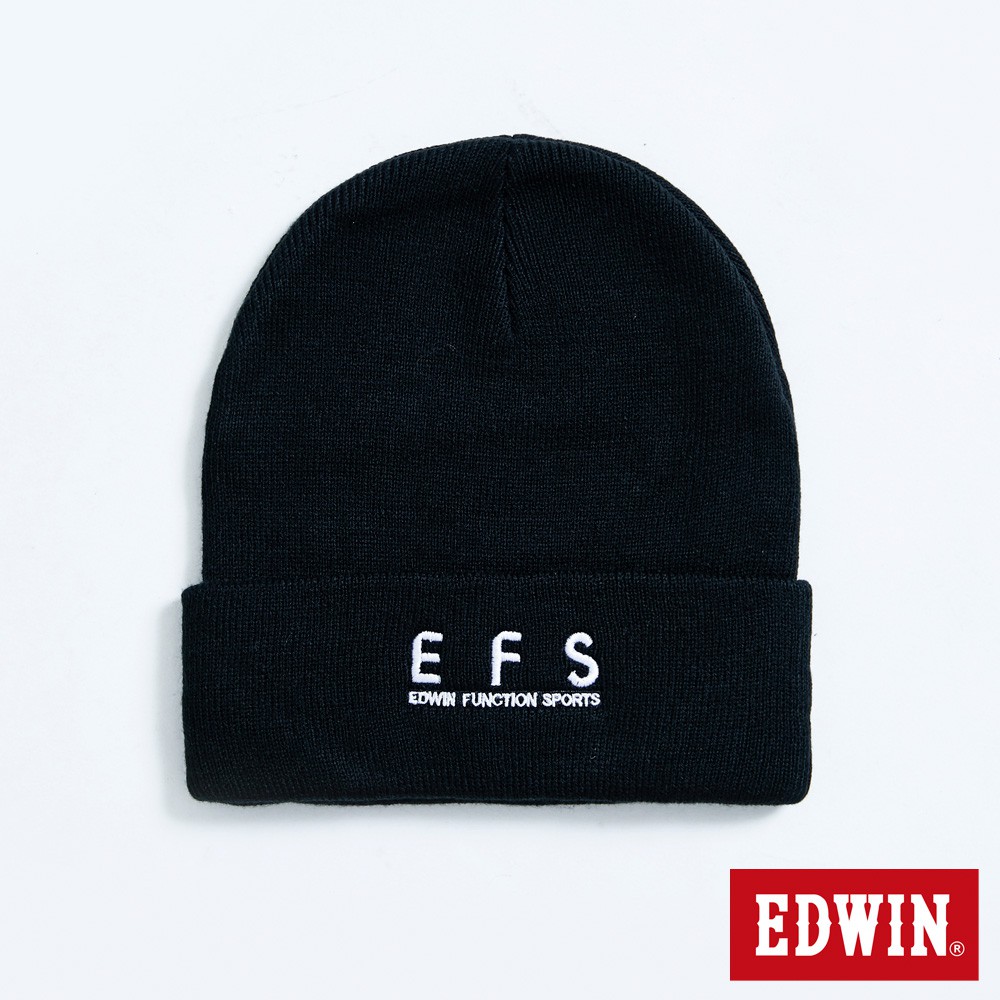 EDWIN 中性款 EFS繡花毛帽(黑色)