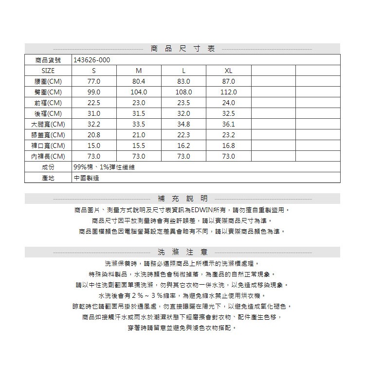 EDWIN 男款 E FUNCTION 休閒九分牛仔褲(原藍色)