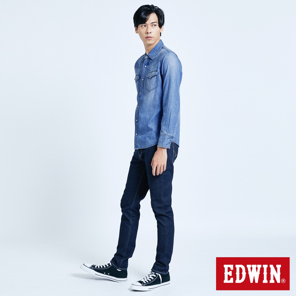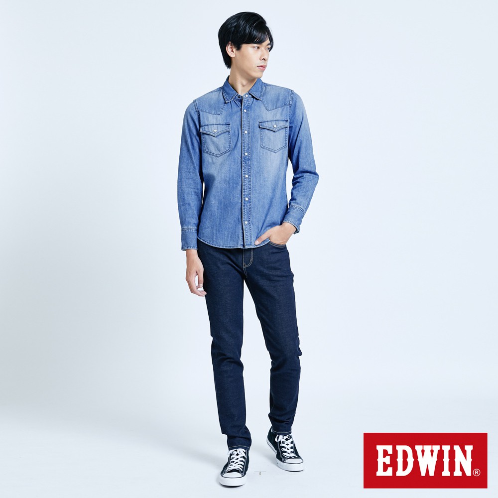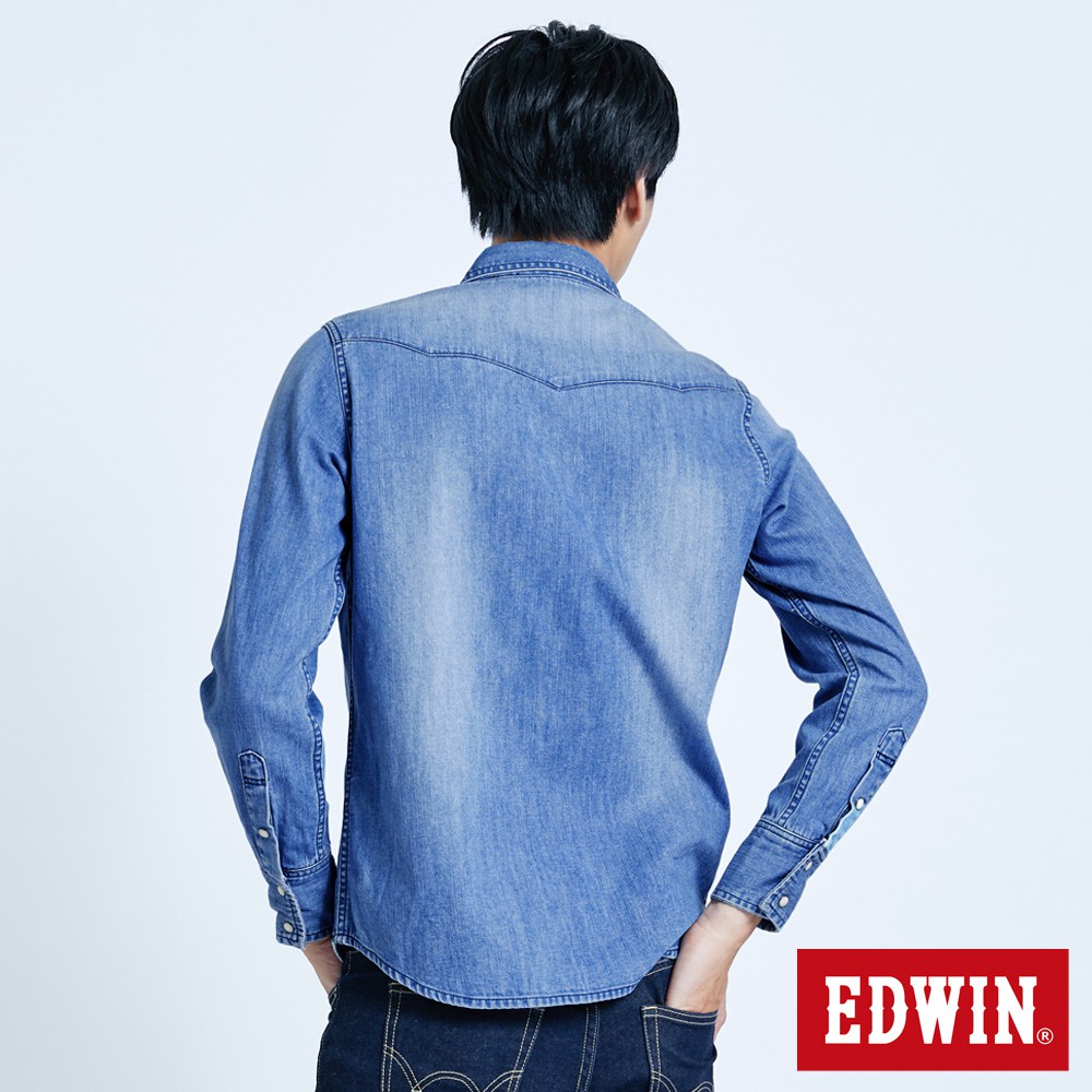 EDWIN 男款 基本牛仔長袖襯衫(拔洗藍)