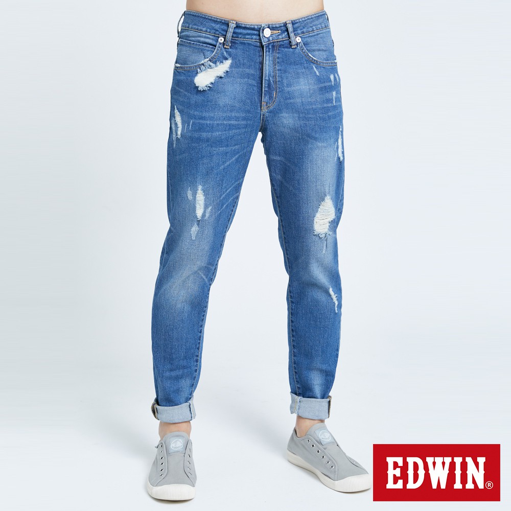 EDWIN 男款 加大碼 503五袋修身AB破壞牛仔褲(石洗藍)