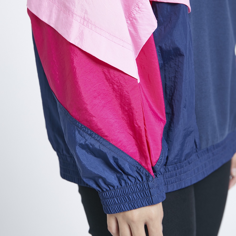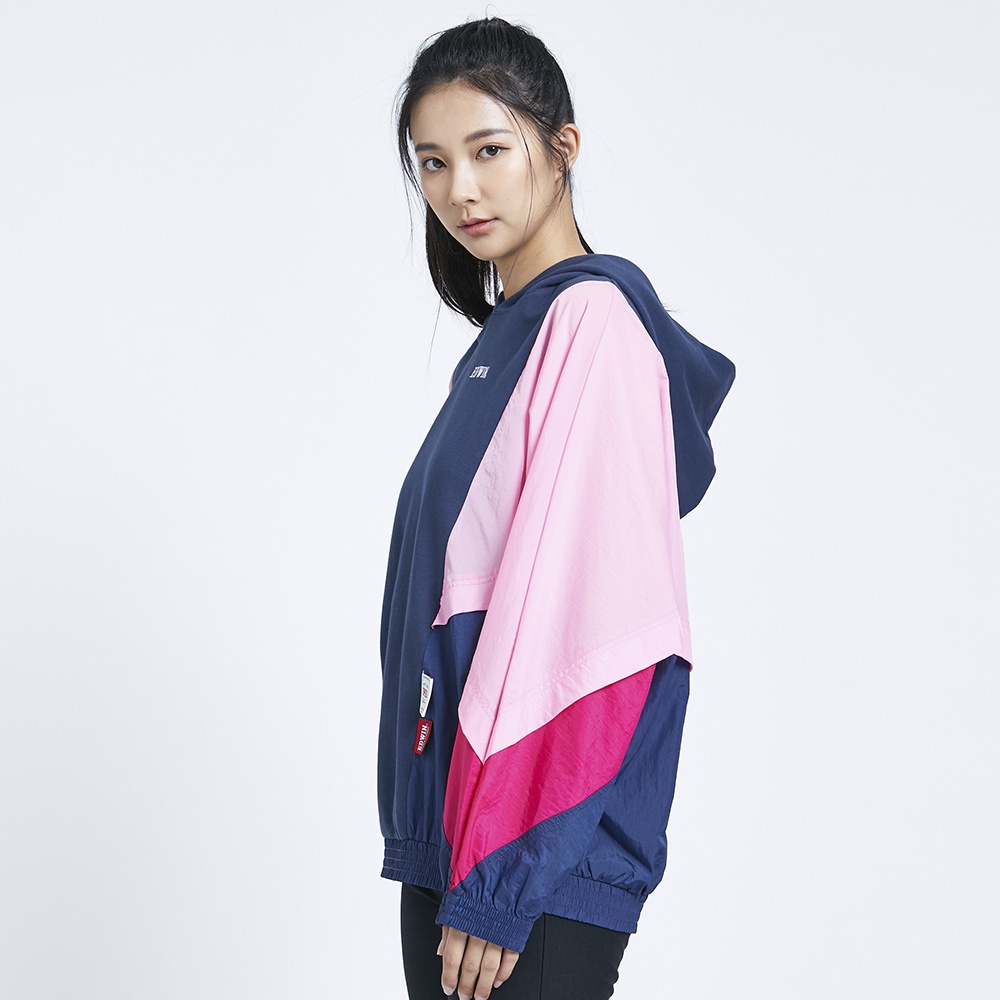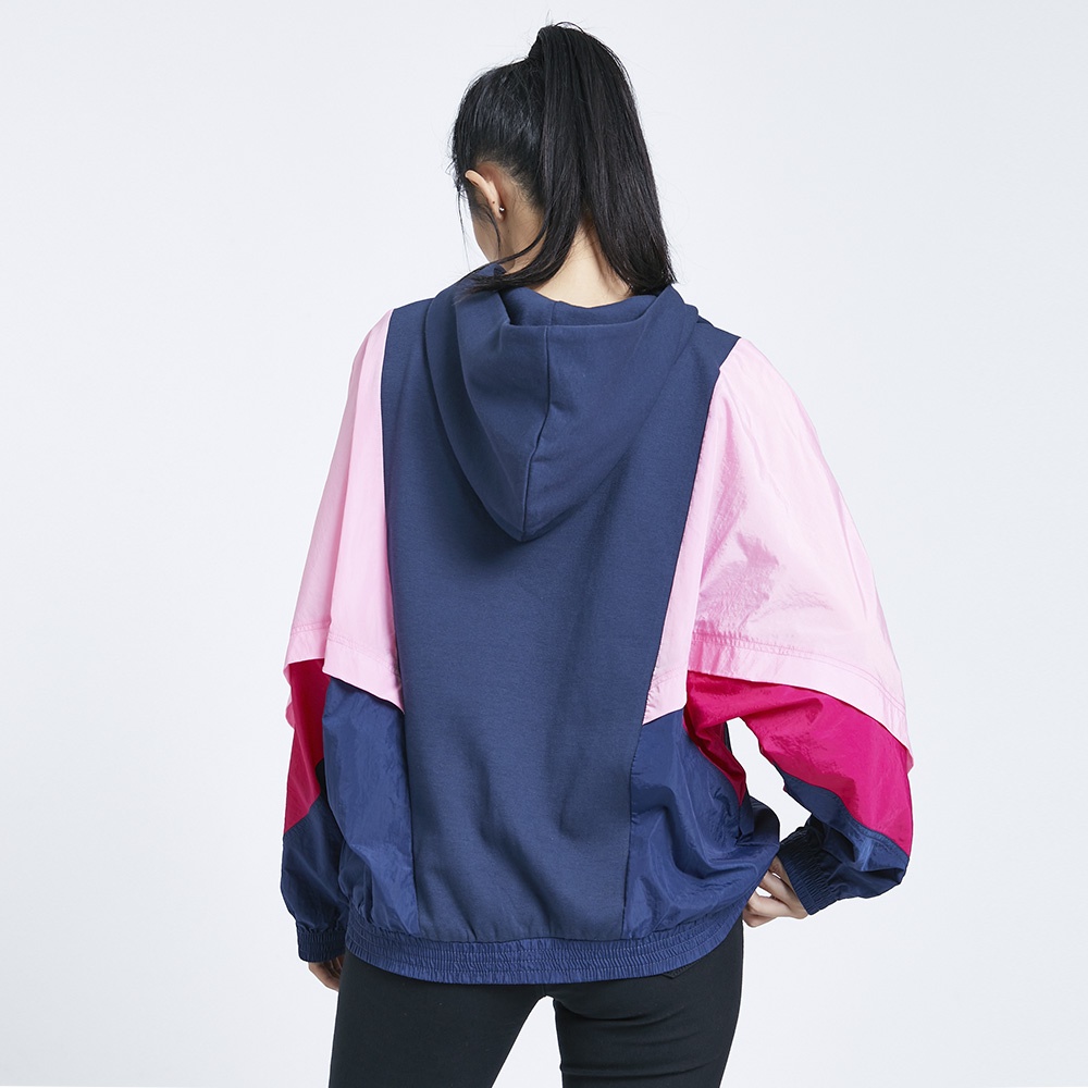 EDWIN 女款 多色拼接帽T(灰藍色)
