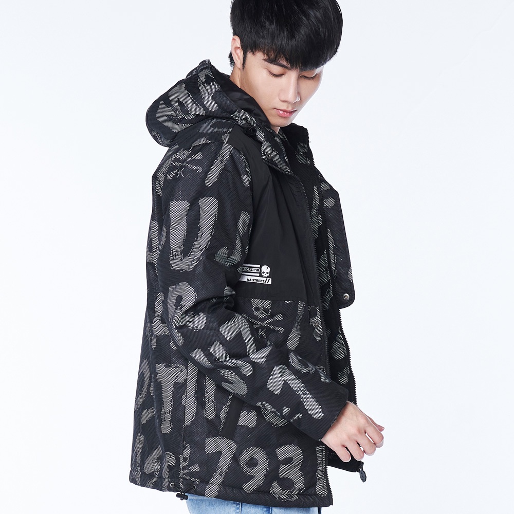BLUE WAY 地藏小王-塗鴉貼網惡搞鋪棉連帽外套