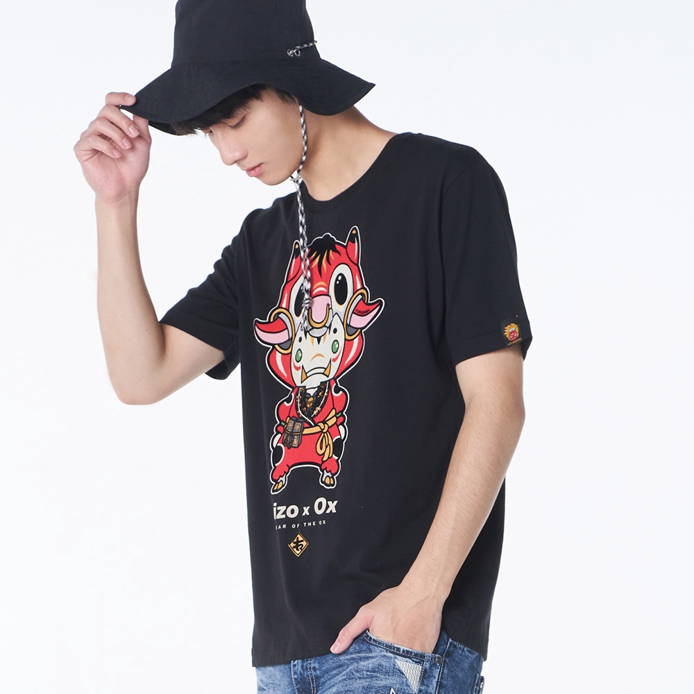 BLUE WAY 地藏小王-Happy牛Year公仔潮流 圓領純棉短TEE(黑)/0207
