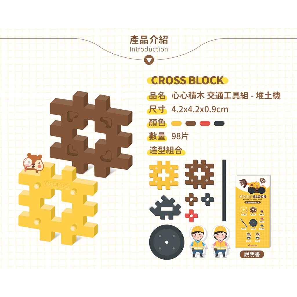 WOOHOO CROSS BLOCK 心心積木 交通組 - 堆土機