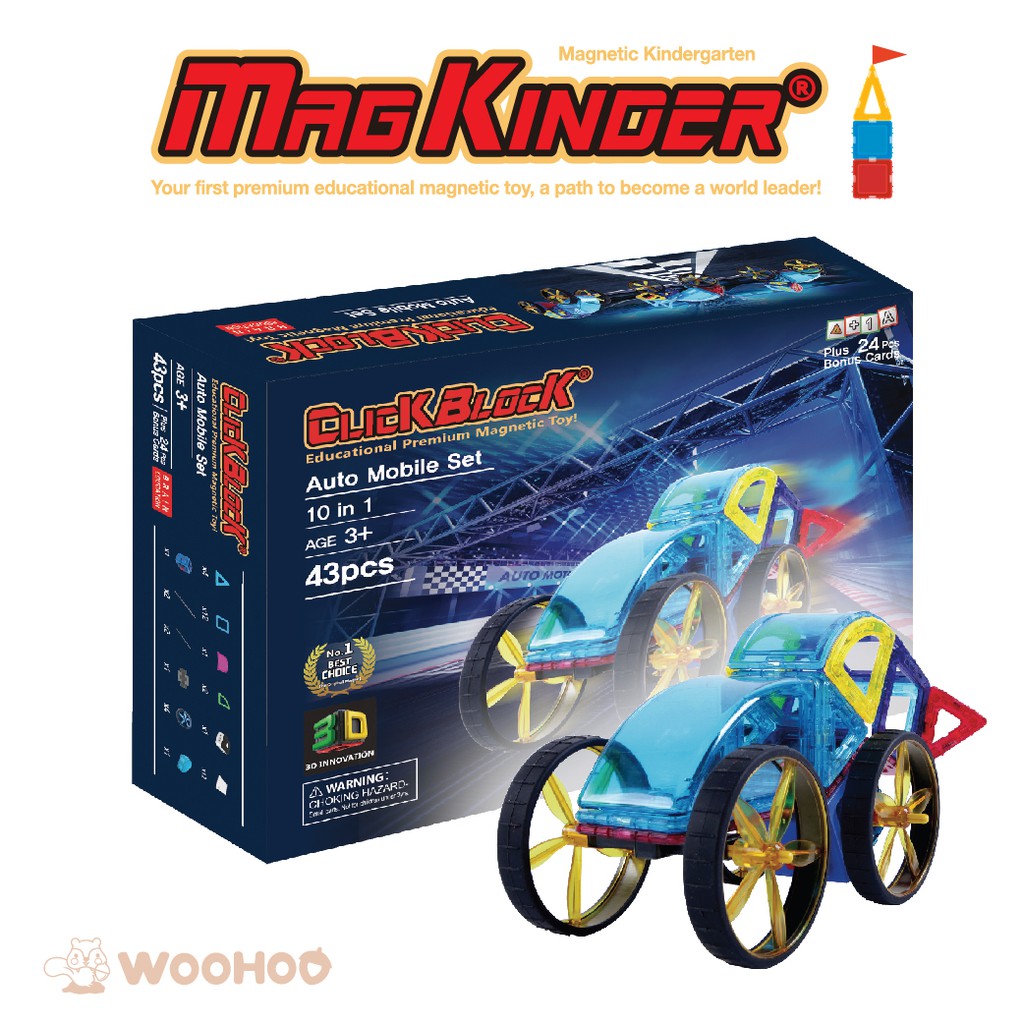 韓國 MagKinder x Click Block 2D 磁性建構片 疾風電動變形車 43件組