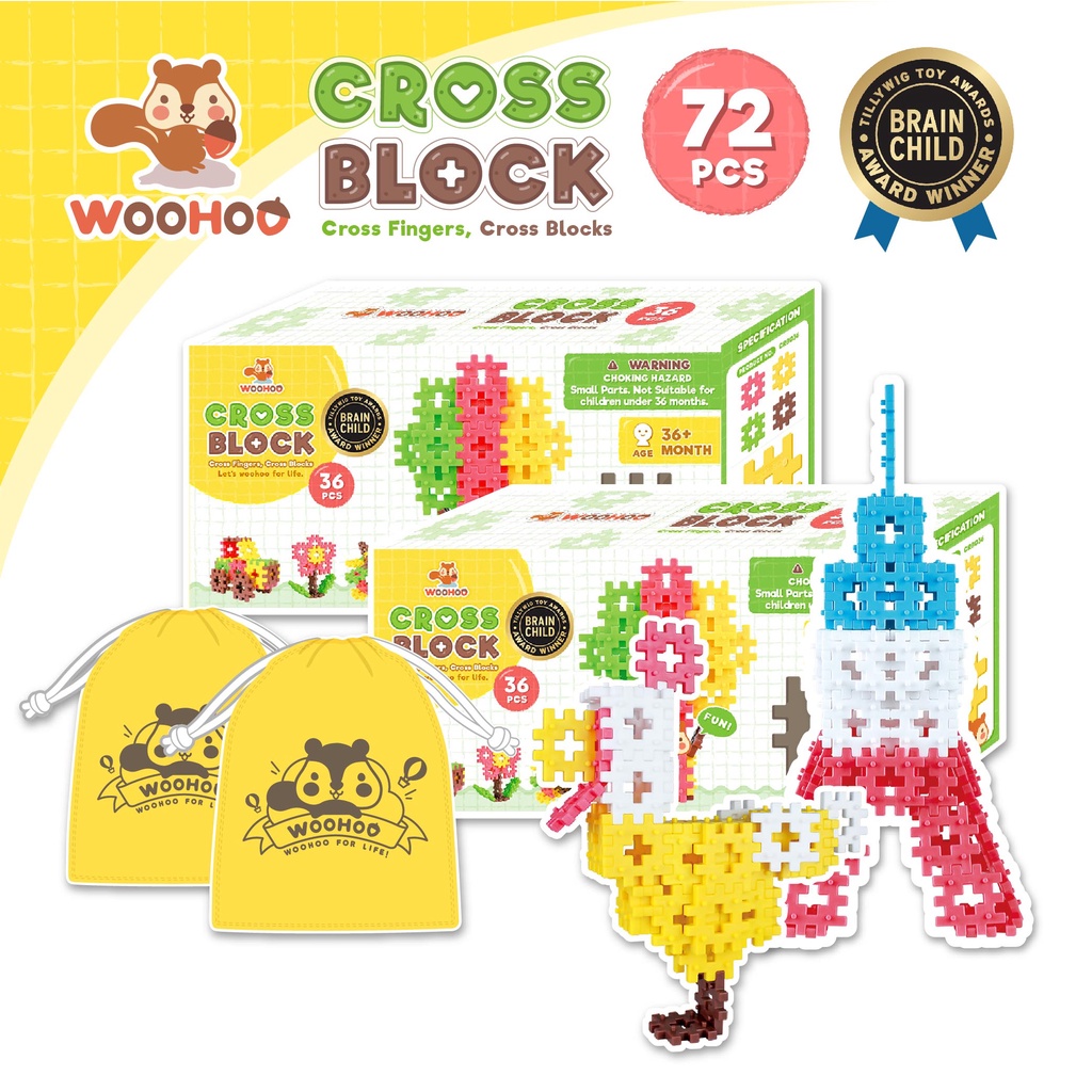 WOOHOO CROSS BLOCK 心心積木 - 72pcs【贈束口袋x2】