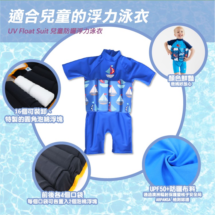 潑寶 UV FloatSuit 兒童防曬浮力泳衣 - 普普風帆船