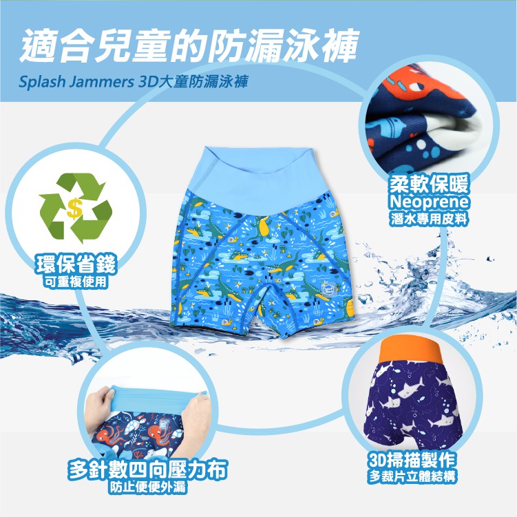 《Splash About 潑寶》Splash Jammers 3D大童防漏泳褲 - 奇幻鱷魚