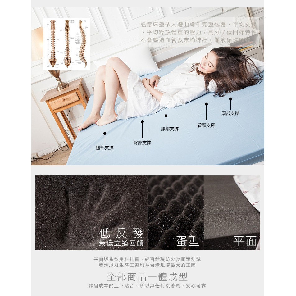 戀家小舖 台灣製床墊 記憶床墊 蛋型7.6cm 平面7cm 防潑水 3M表布 備長炭記憶床墊