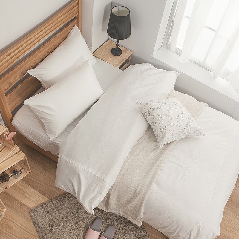 戀家小舖 台灣製床包 單人床包 床單 經典白色 100%精梳棉 床包枕套組 簡單生活 經典 素色