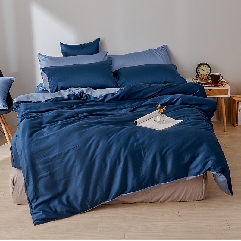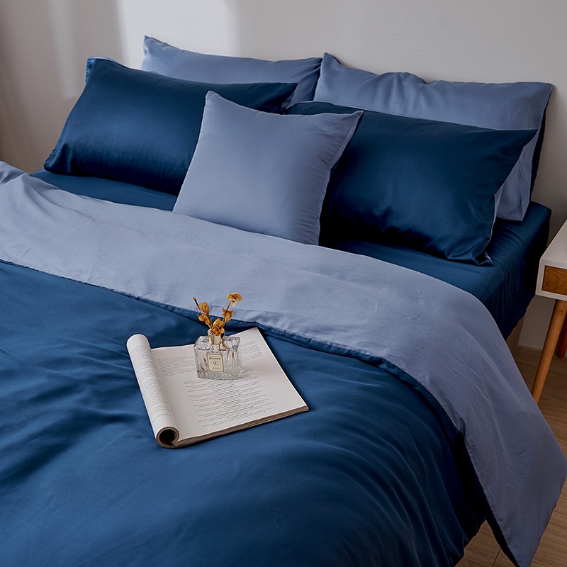 戀家小舖 台灣製 床包 單人床包 床單 銀河藍 100%天絲 床包枕套組 60支天絲 素色