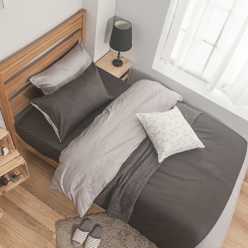 戀家小舖 台灣製床包 雙人特大床包 床單 雙色灰 100%精梳棉 床包枕套組 簡單生活 經典素色