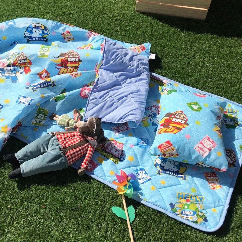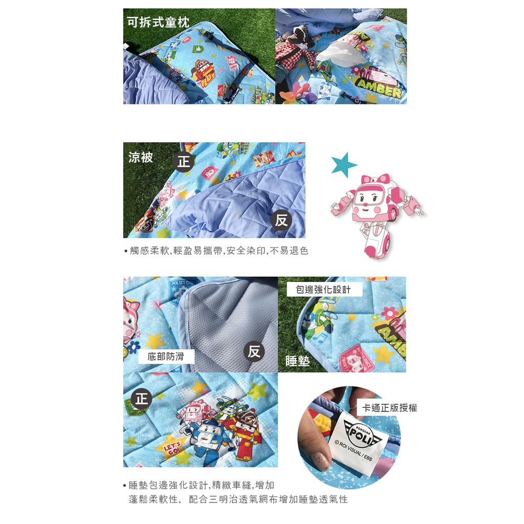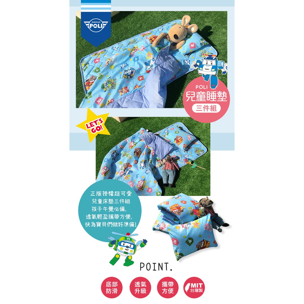 戀家小舖 台灣製睡墊 午睡墊 睡袋 睡墊三件組 波力救援小英雄藍 兒童睡墊 幼稚園 幼兒園專用