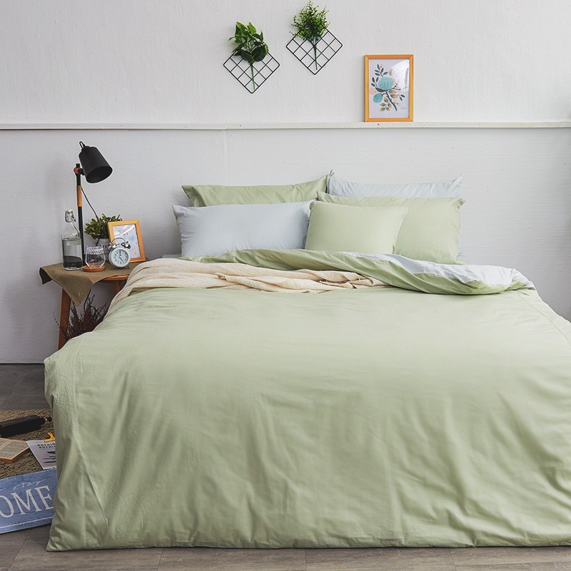 戀家小舖 台灣製鋪棉被套 兩用被 鋪棉兩用被套 清新綠 100%精梳棉 雙人鋪棉兩用被套 經典 素色 棉被套