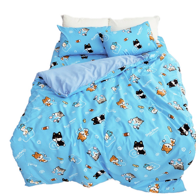 戀家小舖 台灣製薄被套 單人被套 雙人被套 被單 逗柴貓藍 棉被套 磨毛多工法處理