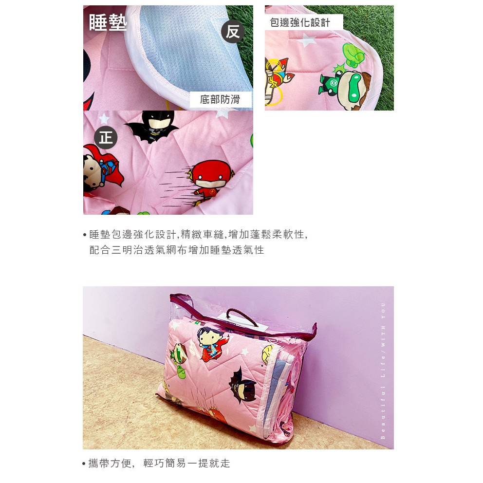 戀家小舖 台灣製睡墊 睡袋 睡墊三件組 Q版超級英粉 兒童睡墊 幼兒園專用 幼稚園 DC正義聯盟 正版授權
