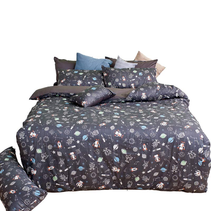 戀家小舖 台灣製床包 雙人床包 薄被套 床單 真空黑 100%精梳棉 床包被套組 含枕套 40支精梳棉 宇宙塗鴉計畫