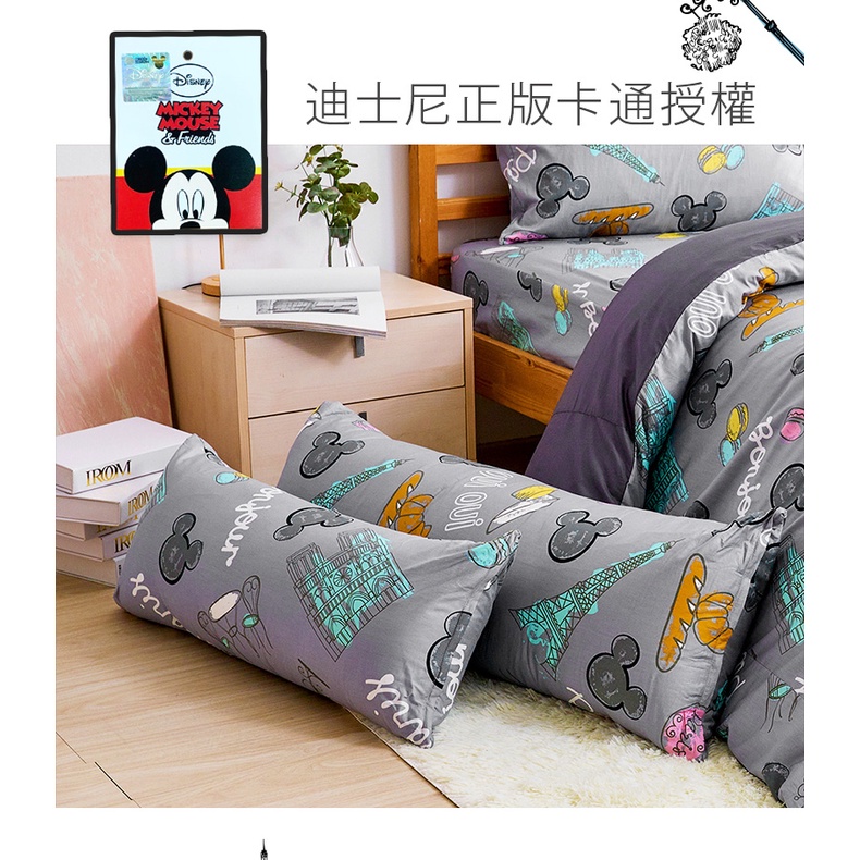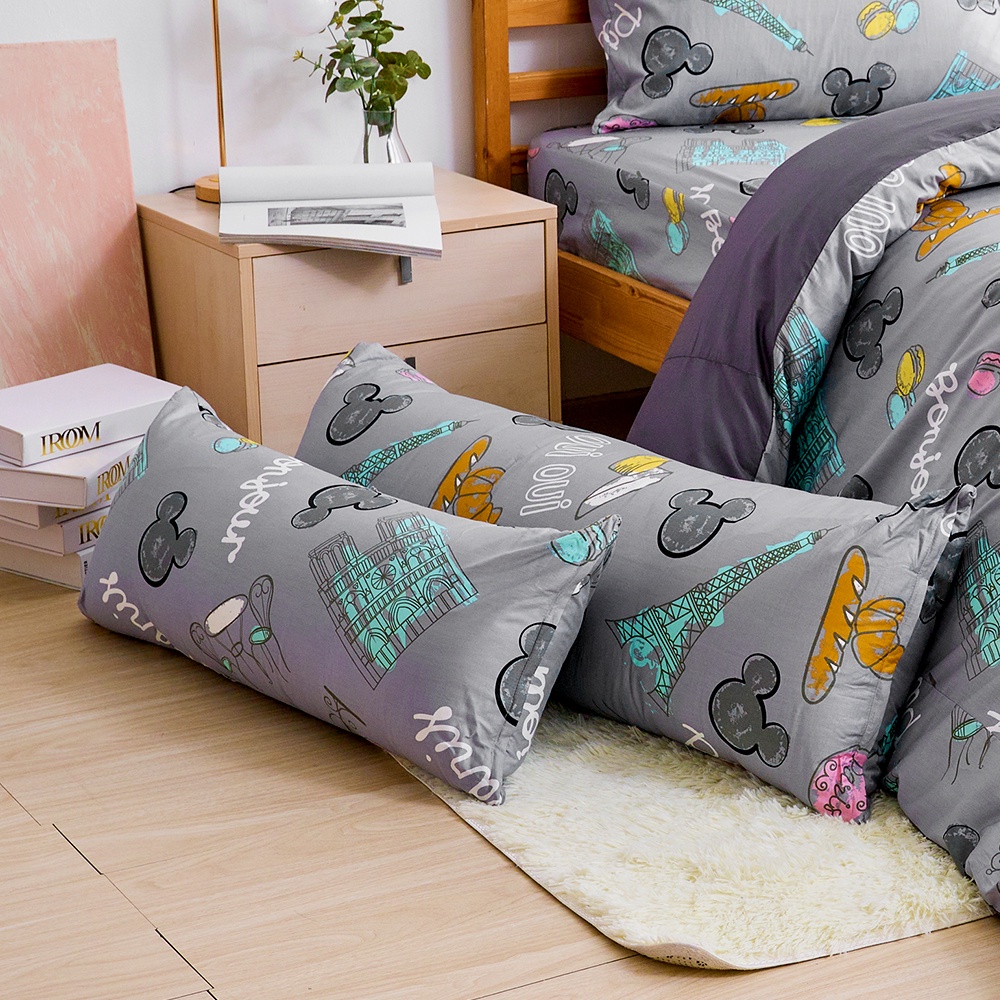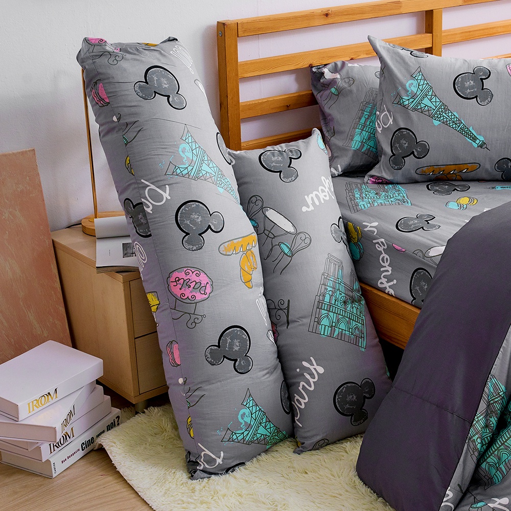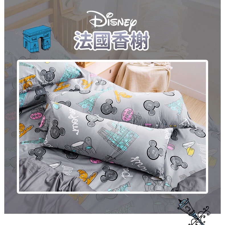 戀家小舖 台灣製抱枕 長抱枕 米奇 法國香榭 100%精梳棉 迪士尼 月亮枕 正版授權