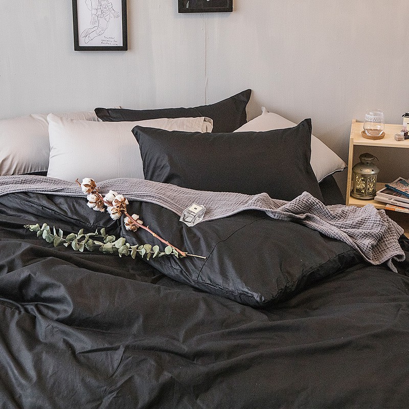 戀家小舖 台灣製床包 雙人床包 薄被套 床單 夜空黑 100%精梳棉 床包被套組 含枕套 簡單生活 經典 素色