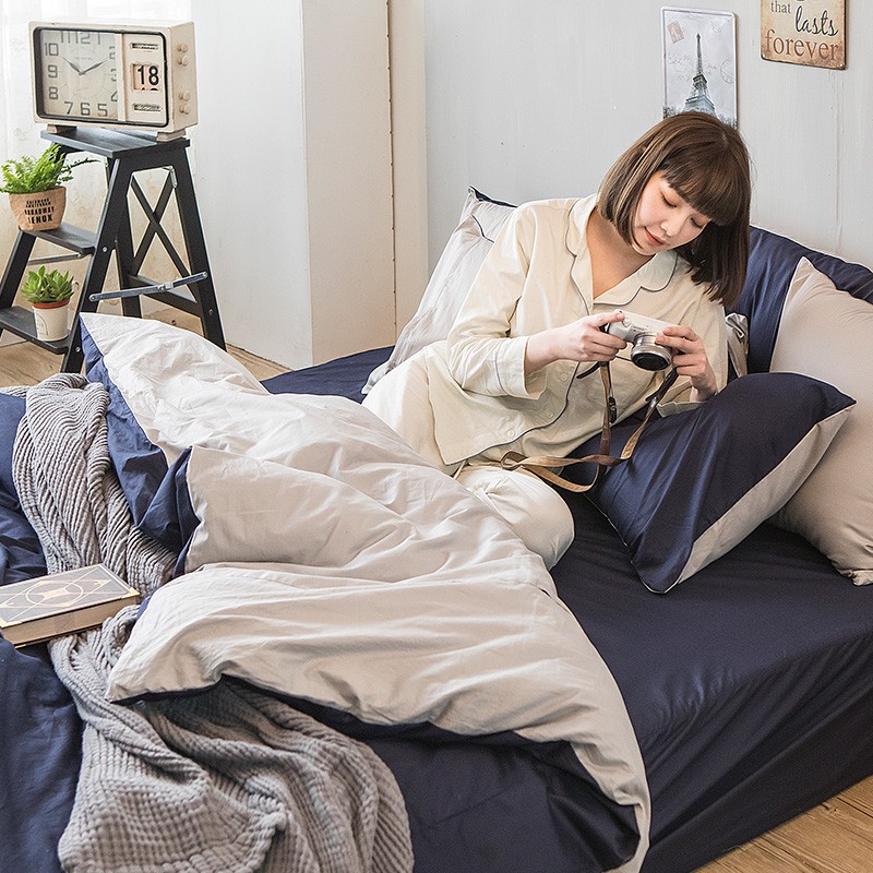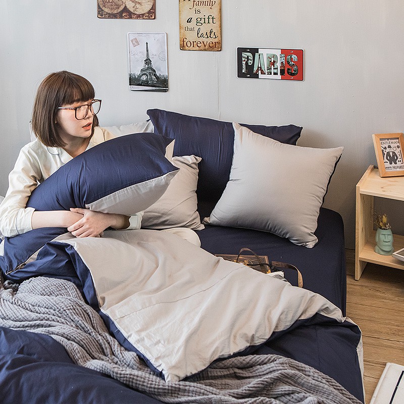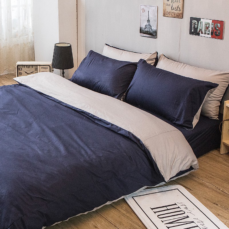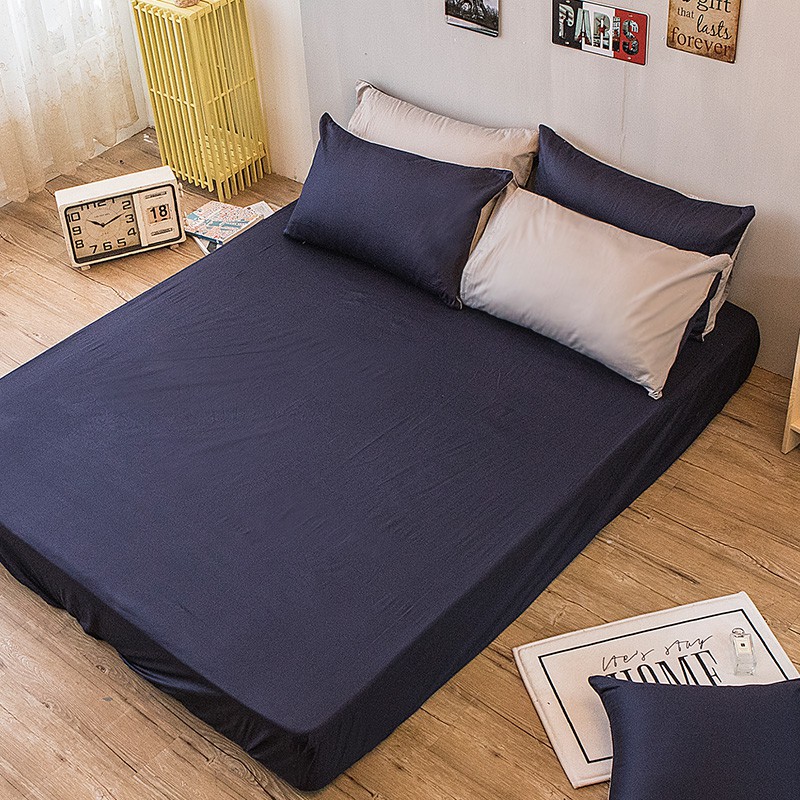 戀家小舖 台灣製 床包 特大床包 床單 紳士藍 100%精梳棉 床包枕套組 經典 素色床包