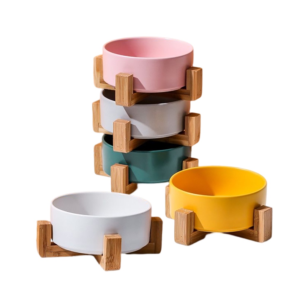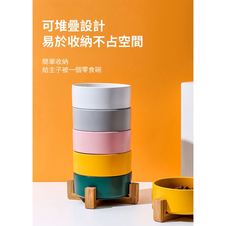 meekee 竹木架陶瓷寵物碗 貓碗 狗碗