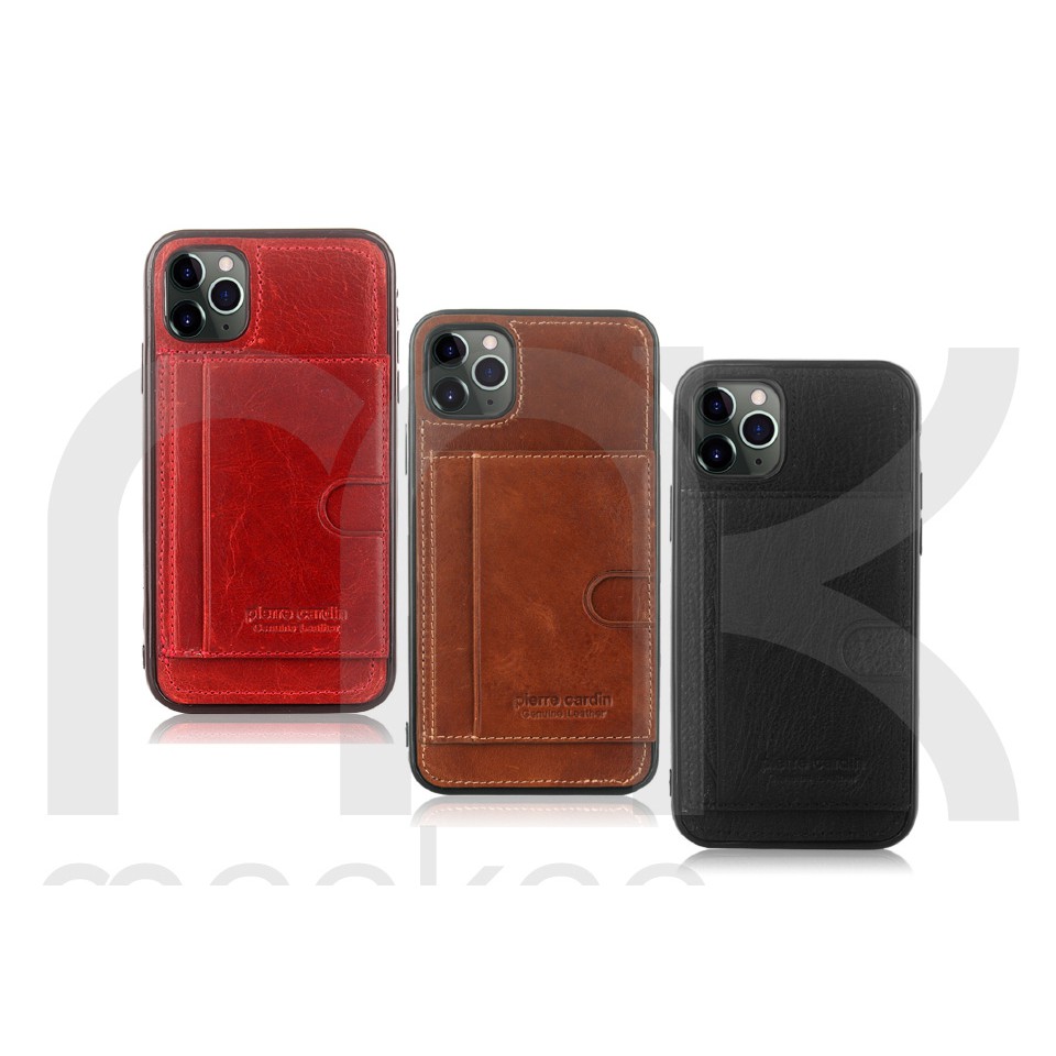 【現貨促銷】法國皮爾卡登 iPhone 11 Pro經典卡袋款TPU真皮手機保護殼 pierre cardin
