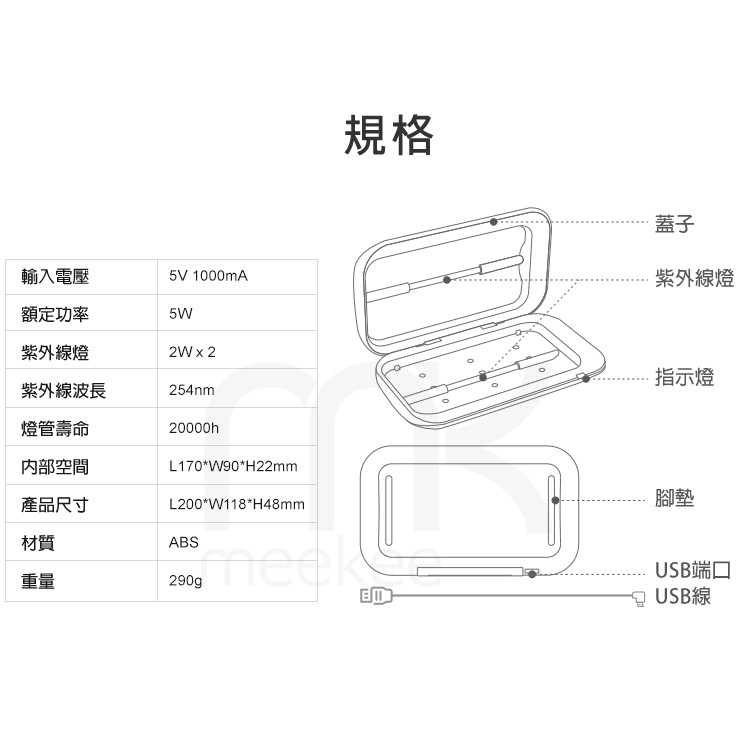 meekee UV紫外線手機除菌消毒盒 紫外線消毒燈 紫外線燈 手機消毒盒 消毒