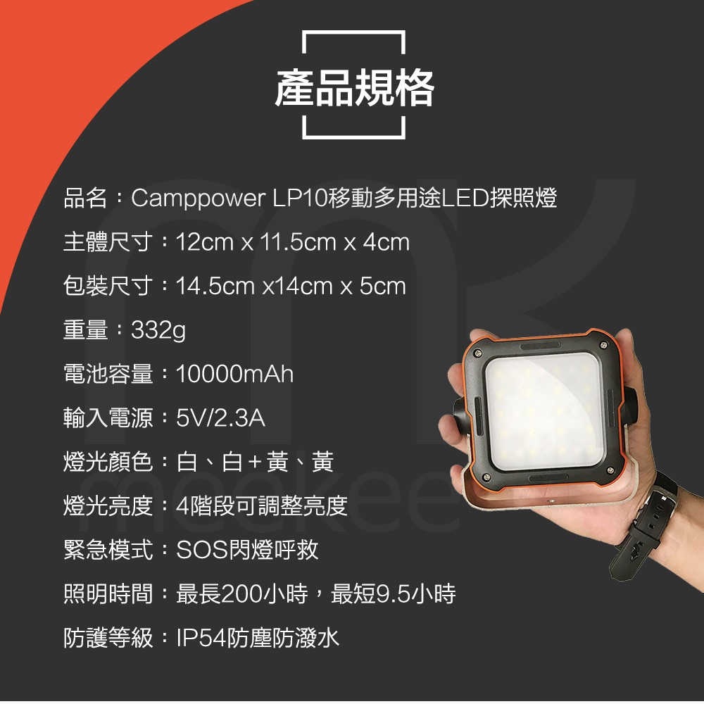 Camppower LP10移動多用途LED探照燈 露營燈 攝影燈 LED照明燈 戶外燈 擺攤燈 充電LED 釣魚燈