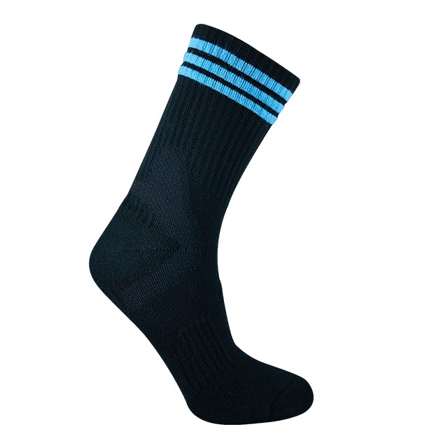 new sport 鈕斯勃【多雙優惠】 萊卡彈性三爪織法透氣抗菌耐磨 全黑藍線 襪子 長襪 透氣 除臭 男襪 女襪