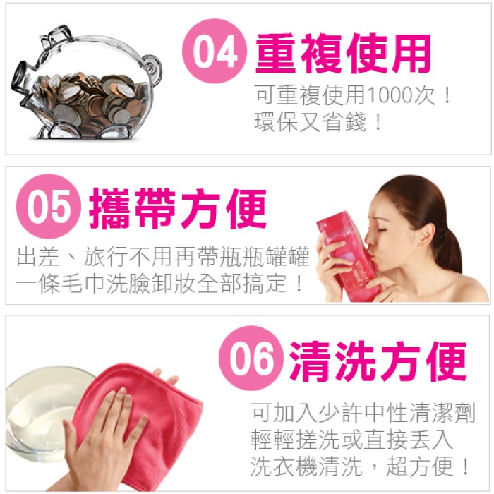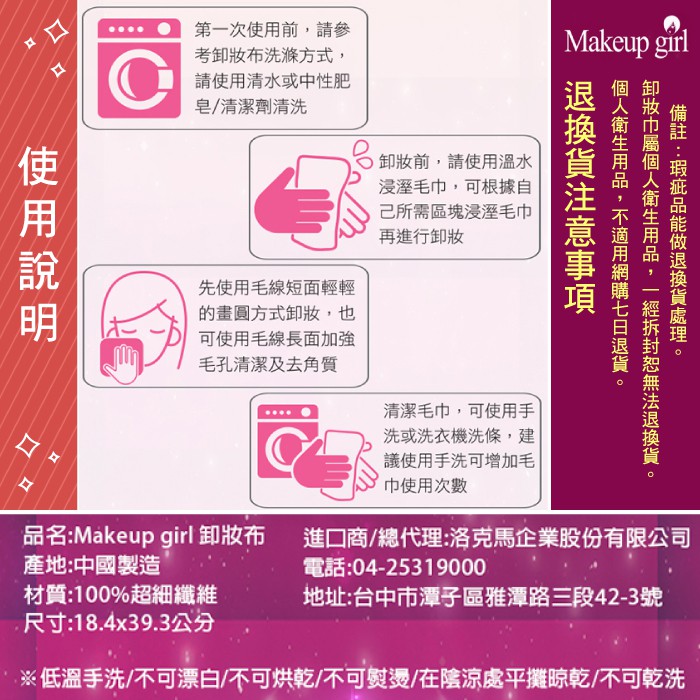洛克馬 Makeup girl 神奇缷妝巾/擦臉巾/卸妝布/超細纖維/缷妝/去角質/使用1000次/粉紅款/