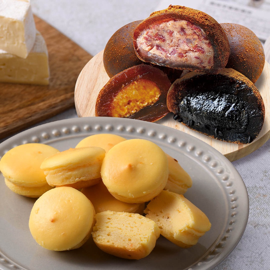 【大溪杏芳食品】原味乳酪球一盒32入+沖繩黑糖手工綜合麻糬各一盒8入(免運)